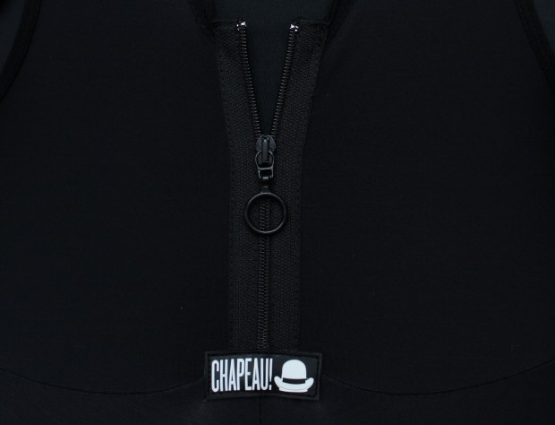 Chapeau have opted to use a short 11cm zip at the front of the tights, which means the Super Roubaix fabric can be extended a little higher – the bib straps don’t start until midway up the chest – thus adding extra warmth without making comfort breaks unduly difficult. The zip also has a ring pull which makes it easier to grab when wearing gloves.