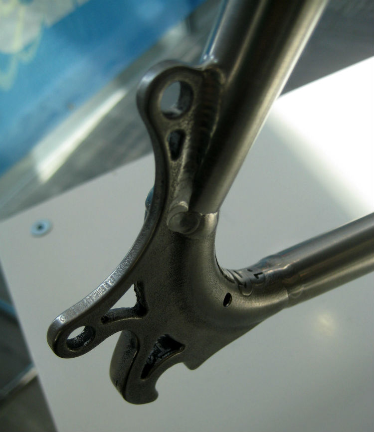 Additive layer manufacturing allows for a far higher degree of complexity; the Freezer Ti’s dropout is hollow, has Charge’s logo printed on the inside, and couldn’t be manufactured using any other method. There’s also zero wastage.