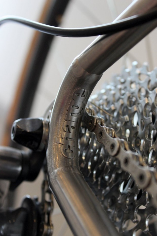 There’s also a tapered headtube, wishbone seatstays to reduce cantilever brake flex, plenty of mud clearance and toptube-mounted cables so you don’t snag the cables when shouldering the bike. We’re looking forward to seeing the finished product.