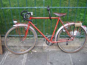 The 1970s cycle pictured, seen chained to a railing in the 5th Arrondisement of Paris, is no ‘constructeur’ bike, being not old enough, too heavy and clearly mass-produced. However, it has the right lines and, with its elaborate racks, ‘Randonneur’ handlebars, dynamo, Mafac brakes and aluminium mudguards, ticks all the 650B boxes. Vive la 650B!