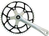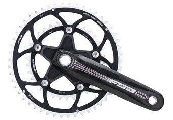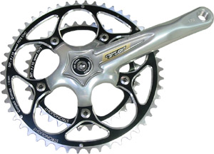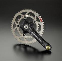 PCD (or BCD) stands for Pitch Circle Diameter (or Bolt Circle Diameter). This dimension varies according to manufacturer. Campagnolo is a 135mm PCD, which means is the smallest ring they can manage is a 39 tooth. Shimano is a smaller 130mm PCD, but this still only allows a smallest inner ring of 38 teeth. There are many other sizes depending on manufacturer – some older cranks (and various track cranks) can be 144mm, so bear this in mind when buying new chainrings. The latest compact road cranks have a 110mm PCD which means they can get down to a 34 tooth inner chainwheel.