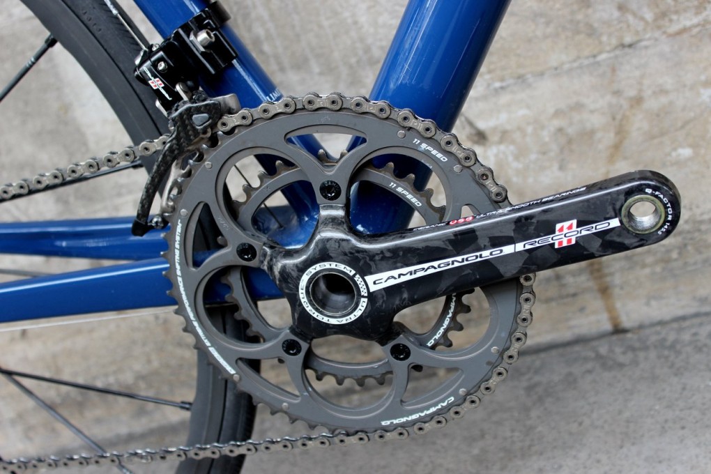 In any case, Record provides sharp, accurate and flawless shifting with that unmistakable Campagnolo ‘clunk’, particularly when moving down the cassette block. The ergonomic shifter hoods are very comfortable, for this rider at least, and the one-button-one-shift functionality of Campagnolo will either appeal to you or not. Our machine used a ‘semi-compact’ 52-36t chainset (itself a beautiful piece of equipment) and that struck a good balance between top-end speed and a fair spread of gears, which is exactly what you’d expect from a ratio which sits right between ‘standard’ and ‘compact’.