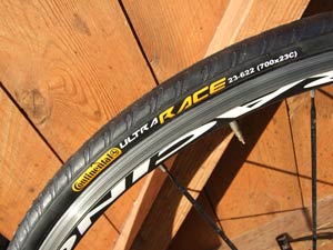 Made in the Far East and designed and marketed as a mid-range sporting road tyre, Continental’s Ultra Race is offered in a choice of wire or folding bead in both 700x23c and 700x25c formats. We are looking at the probable biggest seller in the shape of the folding bead 23c example, which weighs a claimed 220g. Add 50g for the wire bead, which saves £6.