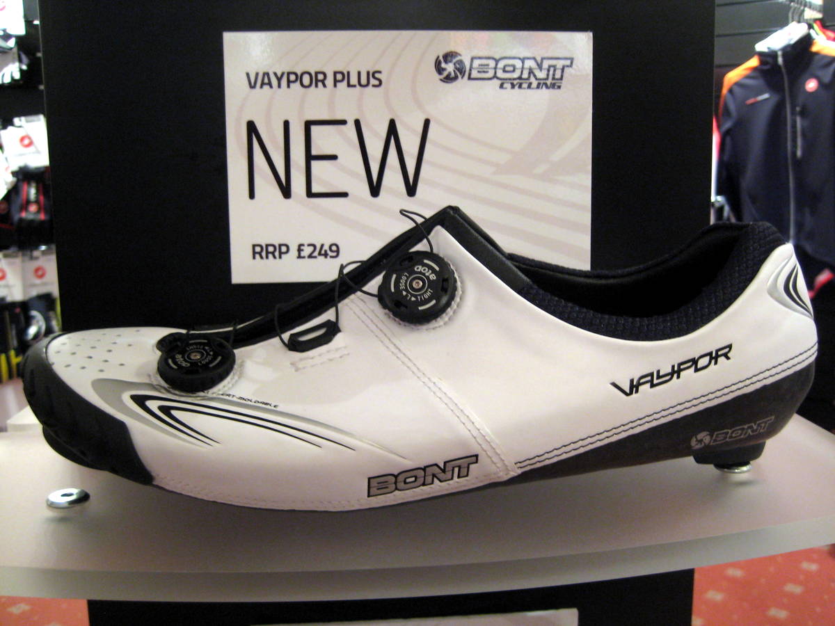Bont shoes have fast become the footwear of choice for a number of riders. The top-of-the-range Bont Zero, which has a full one-piece monocoque design and a heat moldable chassis, received the ultimate endorsement in 2012 on the feet of Bradley Wiggins. The Zero has been updated for 2013, with the Zero MkII both lighter and cheaper than its predecessor, and with a new lacing system.