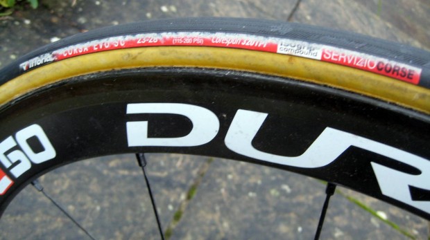 Vittoria supply Argos-Shimano’s tyres, with the ever-popular Corsa Evo SC 25mm pictured here. Otherwise, expect to see Argos-Shimano bikes equipped with Vittoria Corsa Evo CX 25mm tyres, or Vittoria Pave 25mm and 27mm rubber during the Spring Classics.