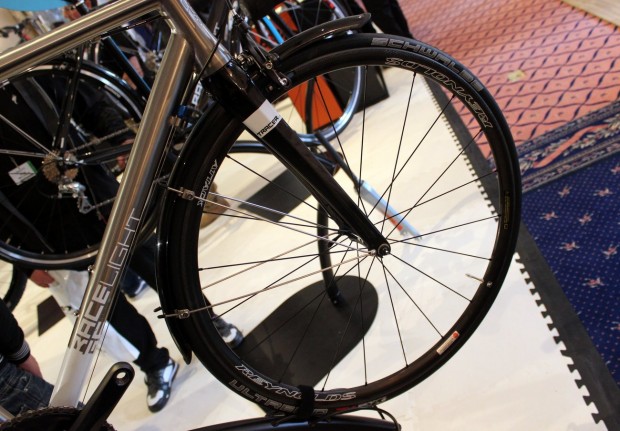 Reynolds’ Aero hoops, which use the DET rim profile described earlier, were previously only available in 58mm, 72mm and 90mm depths, but Aero 46 has been introduced as a versatile, all-round option. Reynolds say the Aero 46 (claimed weight is 1,505g) is “equally at home in a criterium, road race, time trial or even of a ‘cross course”. Yours for £1,999.99.