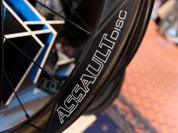 The Assault SLG Disc is part of a wider disc-specific road range for 2014, with two aluminium clinchers, the Stratus Elite Disc and Stratus Pro Disc, also available for early adopters.