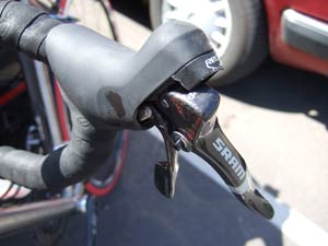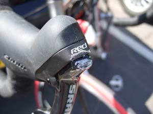 The most severe damage, however, was sustained by the left-hand SRAM RED dual-control lever, which took most of the impact with the ground. Because the brake lever only pivots in one plane, it could not deflect away from the angle of impact and sheared off the pivot lug on the outside.
