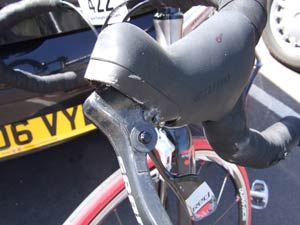 Here’s the main damage sustained by my Enigma Occlusion during the Tour of Wessex, following a fall occasioned by the genius at the front of the lineout deciding to apply his brakes without warning while travelling along a straight road without a hazard in sight.