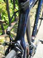 The frame is absolutely gorgeous to behold. RCUK was fortunate to view the exquisite paint finish on a sunny day, with the unique finish glistening under the suns rays. It’s not a flashy bike, classy is the word. All joins are sumptuously seamless, with little evident o the work that has gone on beneath the surface. There’s ample carbon around the bottom bracket area, with noticeable additional layers extending along the seat and down tubes, and the tall section chainstays a nod towards the no-doubt stiff frame. Be warned though, spend too much time in the bikes company and you’ll find yourself doing some mental maths to work out how you could afford it.