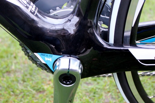 The frame is a carbon monocoque, not wildly dissimilar in silhouette from many others we’ve seen. For a detailed consideration of its tube profiles and angles, read our ‘first look’ article.