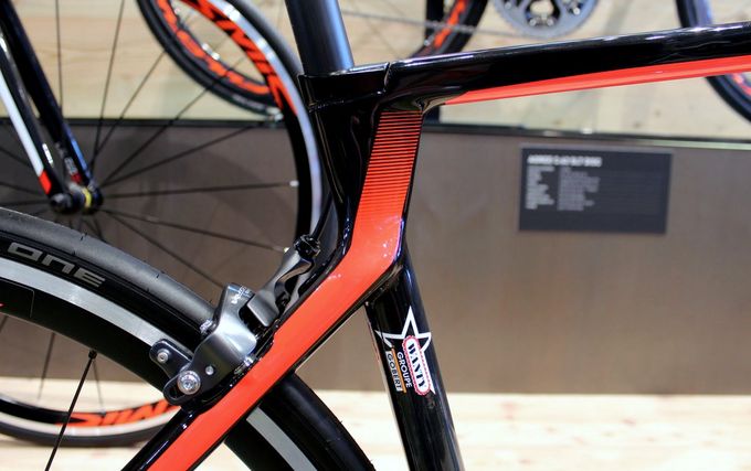 The Agree’s aero features are obvious to the eye. It’s not necessarily a full-blown aero bike like the new Trek Madone or Specialized Venge ViAS, but the fork crown neatly integrates with the downtube, which in turn flows into the huge bottom bracket area. The low-slung seatstays meet the seattube below the integrated seatpost clamp (Cube have stuck with a regular, round 27.2mm seatpost, which is no bad thing as the narrow diameter offers a little more comfort and gives riders a wealth of upgrade options according to setback preference) and, generally speaking, the tubes adopt a truncated Kammtail profile. The direct mount brakes (there’s also a disc brake version, more on that coming below…) also keep things tidy and the frame has clearance for 28mm tyres. All cables are routed internally and, as you’d expect, there’s a tapered headtube.