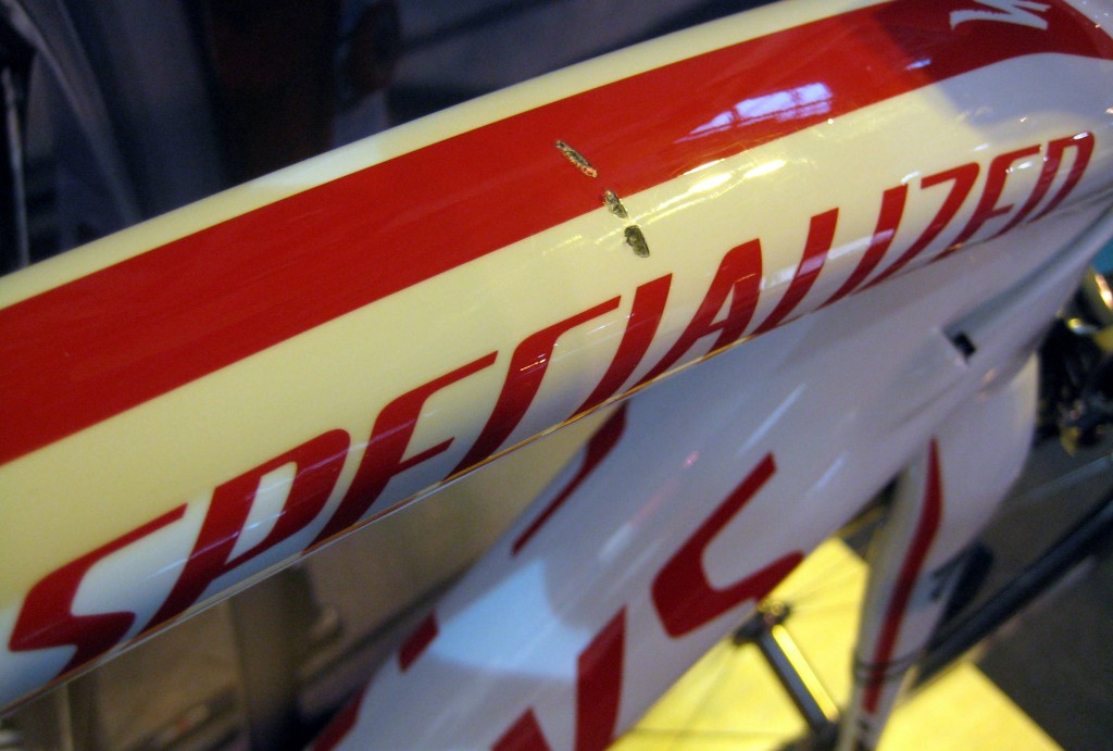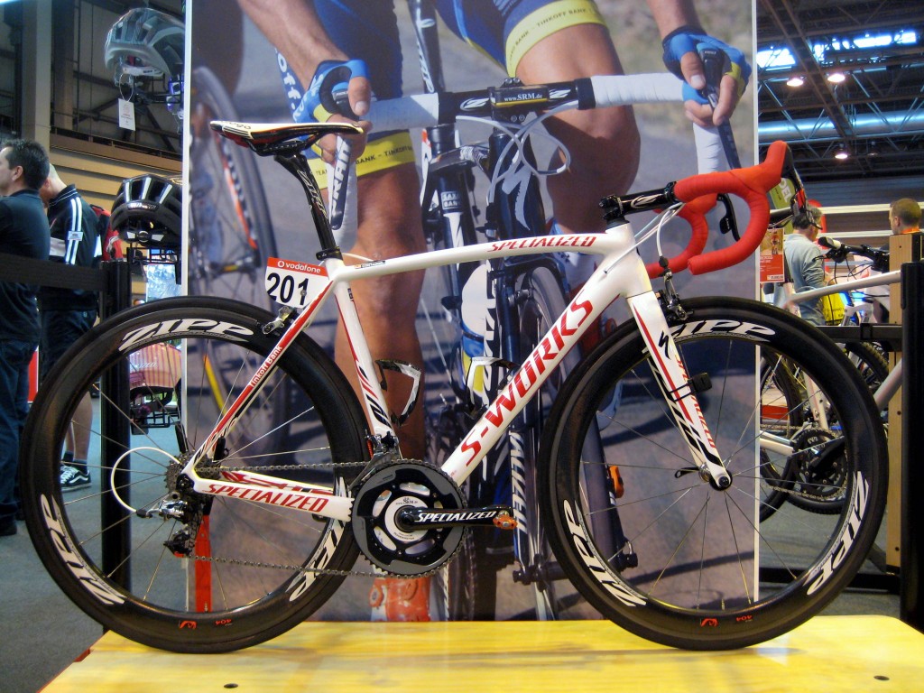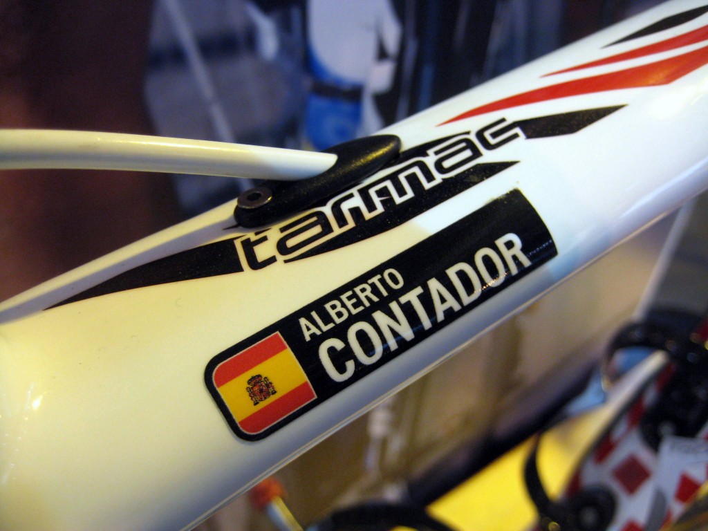 Alberto Contador’s custom red S-Works Tarmac SL4 took pride of place on Specialized’s stand at the Cycle Show.