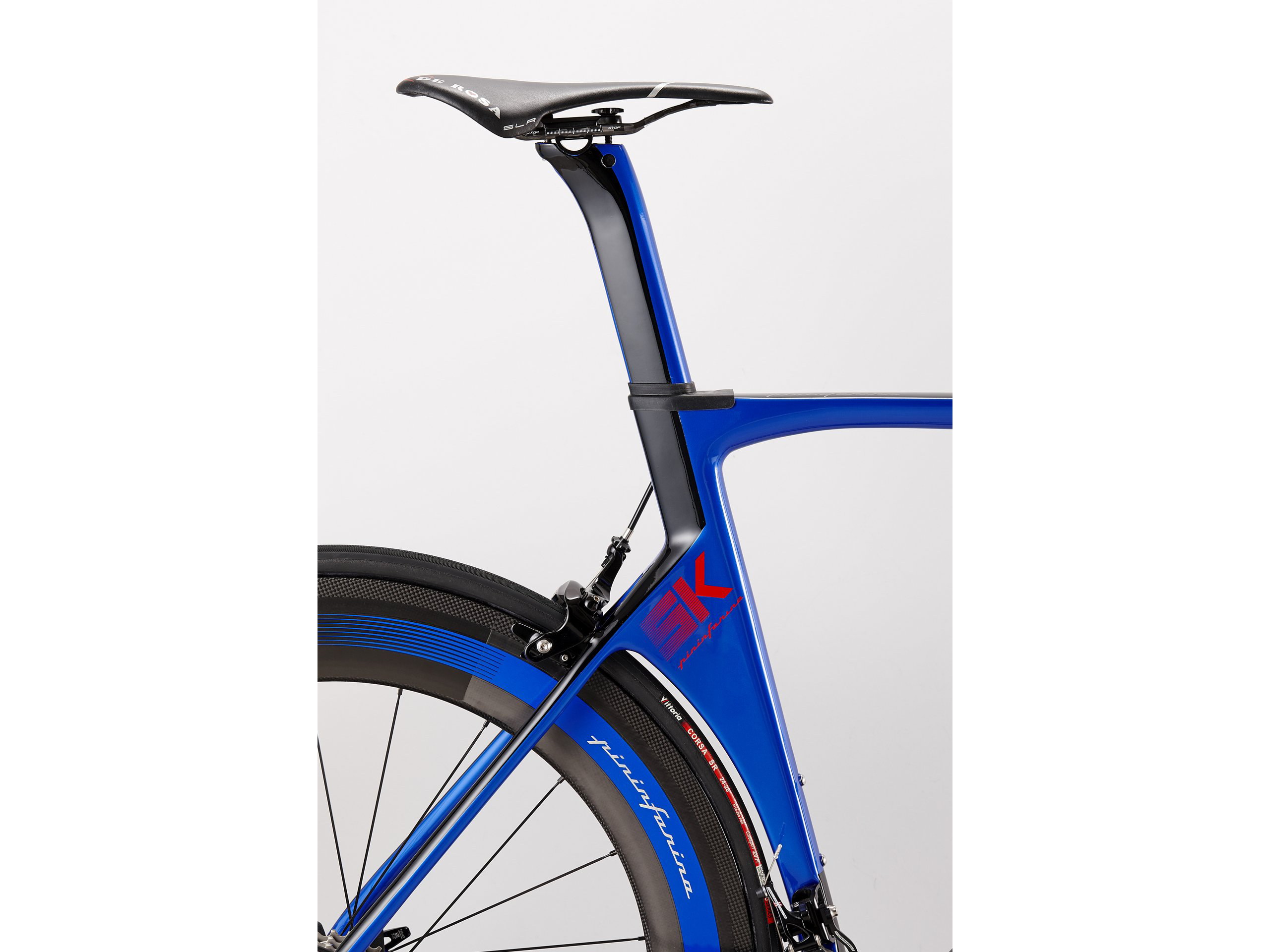 Step forward the De Rosa SK Pininfarina, a marriage of De Rosa’s tech and Pininfarina’s elegant shapes, which was unveiled at Eurobike in September. With Italian flair at its heart, the aero road bike is a definite head-turner, boasting an aggressively aerodynamic profile and an eye-catching design.