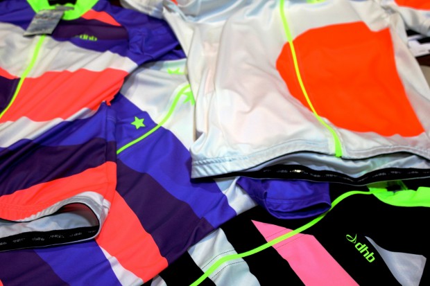 Names like ‘Dasher’, ‘Red Circle’, ‘and Jack Jockey’, provide hefty clues to the designers’ intentions to relax the brand’s image and have some fun. As well as the brightly coloured jerseys and shorts and tights with coloured hems, dhb has produced arm warmers in sizes small, medium, and large, and in similarly unmissable designs. The garments will fit within the brand’s ‘performance’ tier, intended for use ‘day in, day out’ rather than as Sunday best, or to meet the greater demands of a race or endurance event. The BLOK jerseys will sell for £49.99, and the bib-shorts for £59.99, in cuts for men and women (sizes XS to XXL for men, and eight to 16 for women). The bib-tights will be priced at £69.99.