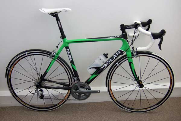 The latest bike to arrive in the RCUK bike shed is a brand new Dolan Dual. The clue is in the name, this is essentially a racing frame but with the addition of mudguard eyelets so that mudguards can be fitted for those training sessions that have to be undertaken in decidedly unwelcome weather. And if you’re racing at the weekend, the ‘guards can easily be taken off.