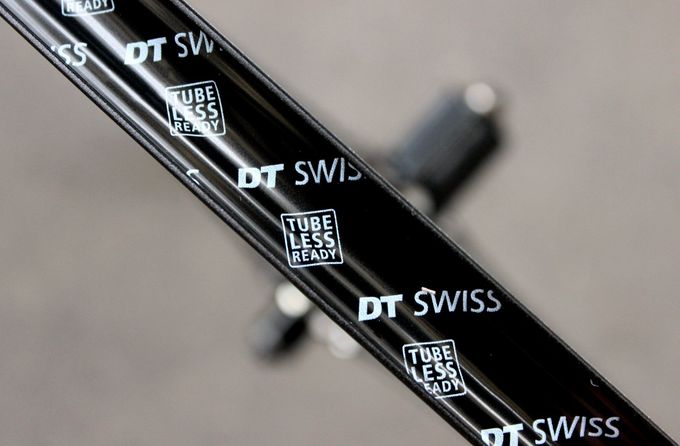 Starting with the front wheel, DT Swiss has built the rim, measuring 22mm outer/18mm internal, around its super smooth DiCut 240s-based hubs with its own Aerolite spokes.