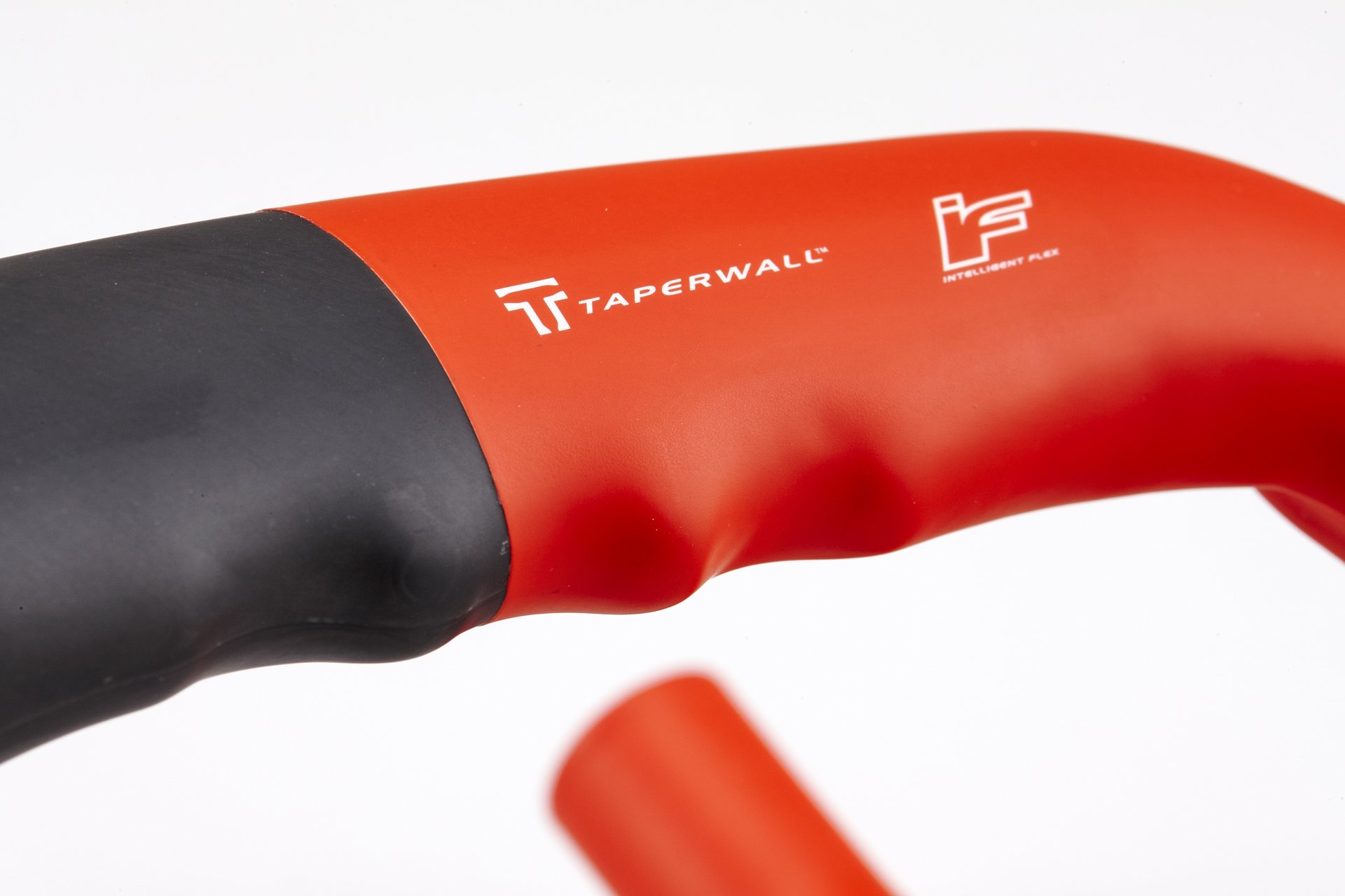 The striking red colour comes from the special finish designed to protect the carbon from bar tape adhesives, and fine-tuning of the bar’s angles ensures it’s compatible with Shimano, SRAM and Campagnolo without any noticeable difference in the transition from bar to hoods.
