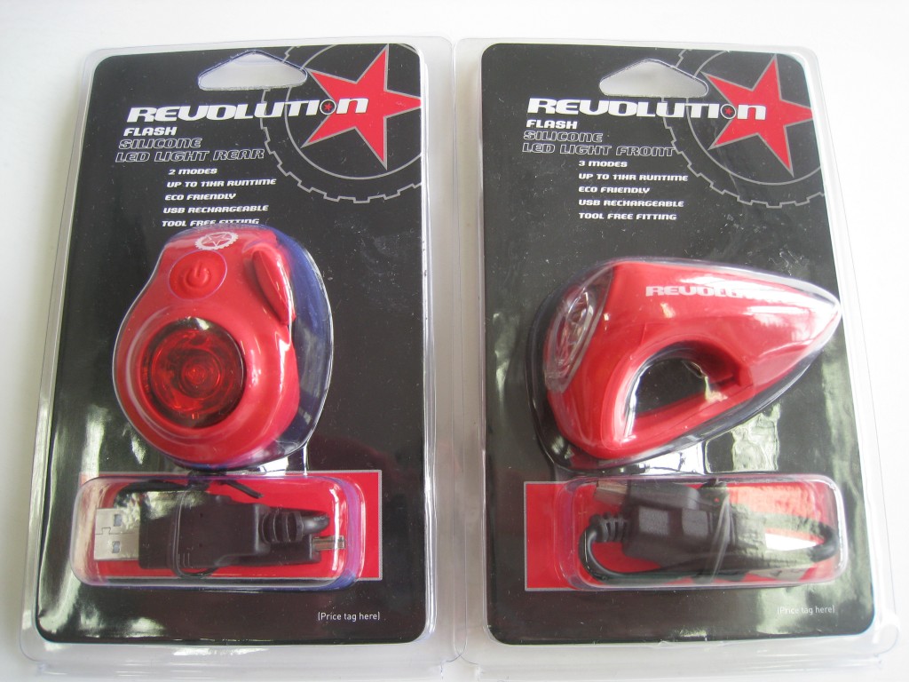 Next up we have the Revolution Flash Silicone LED Front Light and Rear Light. Strictly speaking they’re separate products and will set you back £9.99 a piece.