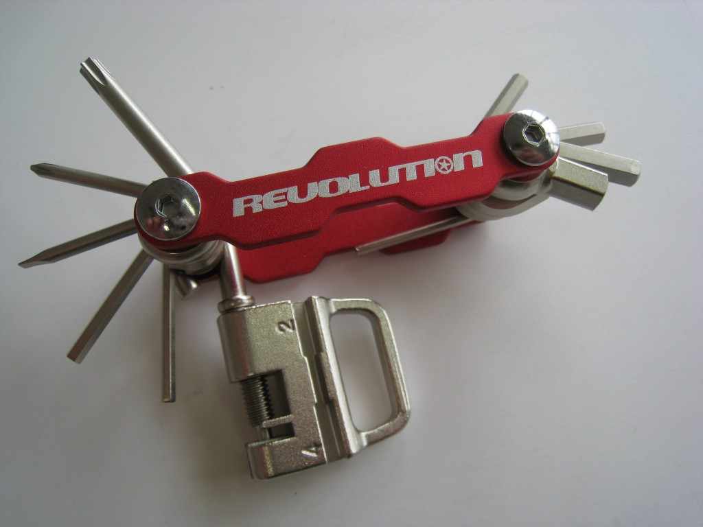 The individual tools are manufactured from hardened steel, while the red side plates are anodised aluminium. The Revolution Tune-Up Multi 15 weighs 164g and retails at £14.99.