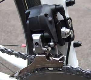 The most remarkable improvement over mechanical operation is noted when shifting the front derailleur. RCUK tried the system out back in February and was immediately impressed with the effectiveness of both front and rear systems. Simply pushing the button moves the front derailleur smoothly and effortlessly, even under high load. So enjoyable is the sensation it is easy to find yourself ridiing around shifting up and down the chainrings simply for the fun of it. An additional feature is the automatic trim function; to prevent chain rub, the front derailleur chain plate positions itself automatically in response to the sprocket position of the rear derailleur.