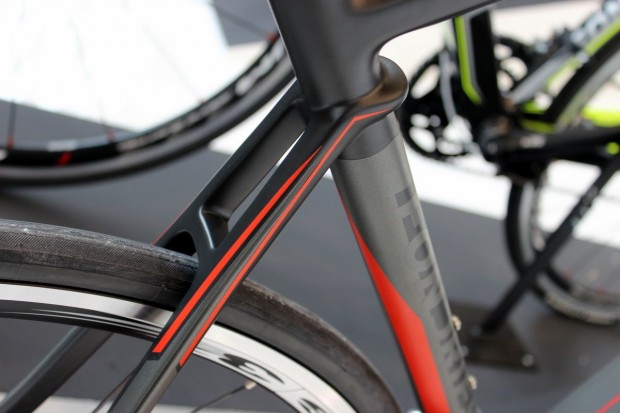 The TF4’s seatstay/seattube junction is also a marked departure from that of the TF2 and TF3, with the seatstays effectively wrapping themselves around the seattube, leaving a pronounced bulge, rather than flowing into the toptube. Fondriest tell us the new design is purely aesthetic.