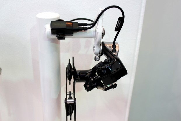 The ANT Data Fly dongle connects to Di2 mechs with Shimano’s E-Tubes