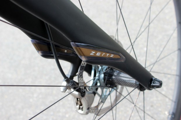 The Roubaix uses Zertz elastomer inserts on the fork and seatstays to boost comfort. The roads around Friedrichshafen are uniformly smooth, like riding on a billiard table, and so are not the best test of the Roubaix’s comfort. Any bike feels comfortable round here, but we took a detour off the official test route and sent the Roubaix down a gravel farm track, which in turn led to a short cobbled section.