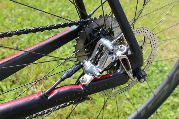 Apply pressure to the lever and you are rewarded with smooth, linear braking. That enables you, the rider, to control the power of braking to a far greater degree and it is very difficult to lock-up the back brake without applying a huge amount of force to the lever. The difference in modulation was keenly felt when switching back to mechanical rim brakes on subsequent test rides of the BMC Team Machine SLR01 and Scott Addict Team Issue (watch out for first ride reports on both).