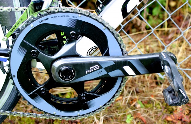 Our test ride was conducted on a machine equipped with a standard 53-39 chainset and an 11-26 block, and we experienced no chain rub. SRAM make the same claim when used with their Wi-Fli ratios: 11-32 and 12-32 cassettes.