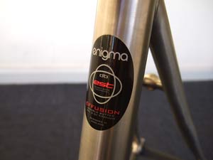 What’s this? It’s an Enigma, for sure, with the Sussex-based company’s trademark clean graphics and easily recognisable house branding sparingly applied to beautifully welded titanium tubes.