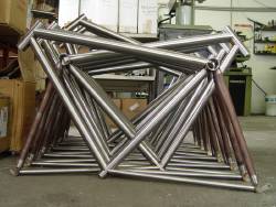 Dario builds mostly in steel (80% of his output) with a small range of lightweight aluminium frames making up the balance. The legendary Marcelo frame is built using Pegoretti specified Columbus tubing. Dario places great emphasis on stiffness and comfort in a frame and is dismissive of the current trend to ultra-lightweight frames. Anyone who has ridden a Marcelo will appreciate his dedication to comfort and stiffness, those lucky enough to have ridden one will tell you that you will go a long way to find a better handling frame.