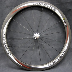 These carbon wheels with high profile rims have a set weight of about 1500 grams. They have 16 bladed spokes in the front wheel and 20 in the rear and they will be produced in tubular version for Shimano 10-speed only. These wheels combine an exceptional rigidity with a lightweight aerodynamic design. Dura-Ace hub technology guarantees smooth turning and perfect adjustment thanks to the proven Shimano cup and cone system.