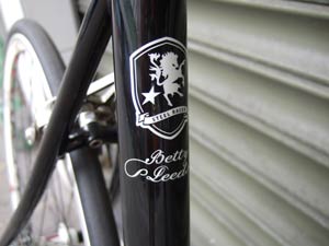 ‘There is one more thing about Fixie’s Betty Leeds; it’s an absolutely great looking ride. It can be clearly seen that it is coming from a fixed wheel background, it’s just crazy trendy, with asymmetrical graphics on forks and matching white wheels and bar tape. Betty is simply a very pretty bike.’