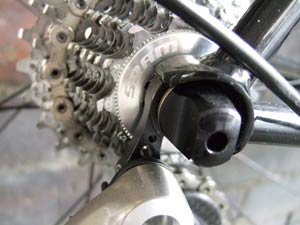 Available in the UK through Mosquito Bikes, Fixie Inc. first established a reputation based on single speed cycles but has branched out into derailleur gearing with the Pure Blood and Betty Leeds. The Karlsruhe firm uses custom-drawn TIG-welded 4130 ‘aircraft steel’, a chromium-molybdenum general purpose alloy steel. Its frames are notable for their individual styling and immaculate detailing, and the Betty Leeds is no exception. Weight is around 1600g depending on size. The example tested is a pre-production model. The drive-side rear dropout design, which makes wheel removal awkward, is substantially changed for production and includes a CNC-machined 7075 aluminium alloy replaceable gear hanger.