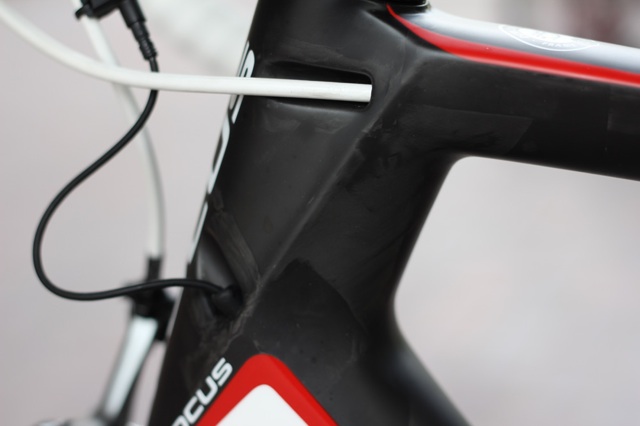 Focus are keen to distinguish their bottom bracket from the BB30 press fit standard. The Focus BB has an English thread and is compatible with the Shimano Ultegra crank with which our test machine is supplied, and SRAM Red cranks. RCUK understands that all Focus frames will uses the ‘push fit’ standard from now on.