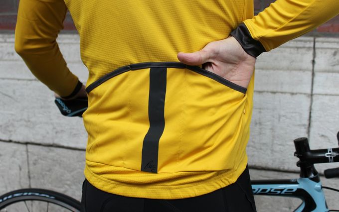 One element that lends itself to use as a mid-layer is the jersey’s breathability. You can wear it comfortably as a mid layer without worrying about creating the sweat-filled sauna effect often associated with wearing a long sleeve jersey underneath a jacket. This is due to the fast wicking almost mesh-like material on the back, which I found removed sweat nicely.