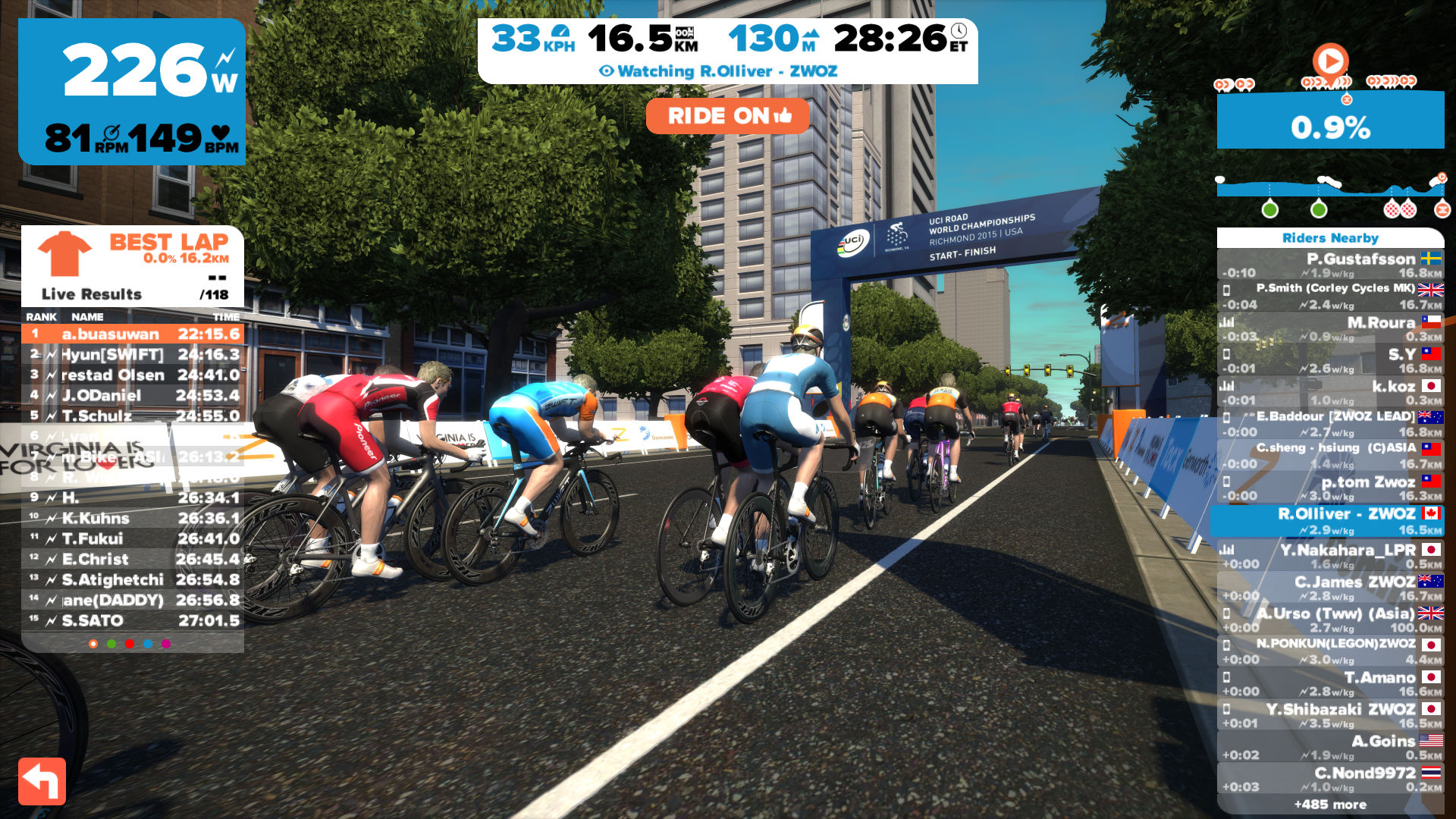 Zwift’s online world includes Watopia, a digital South Pacific paradise, as well as course based on RideLondon and the 2015 UCI Road World Championships in Richmond, Virginia