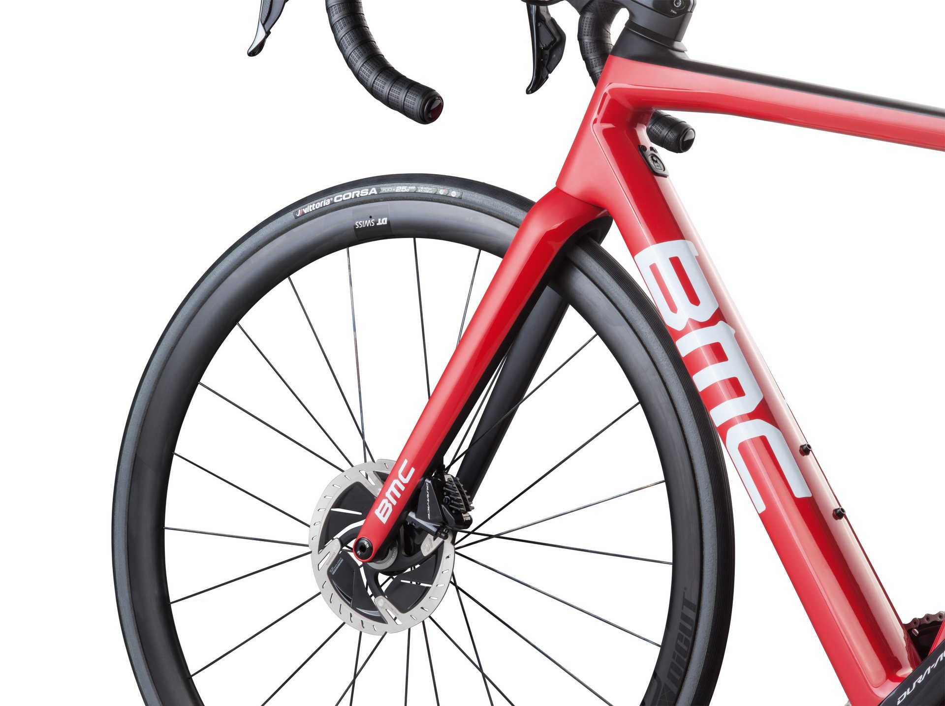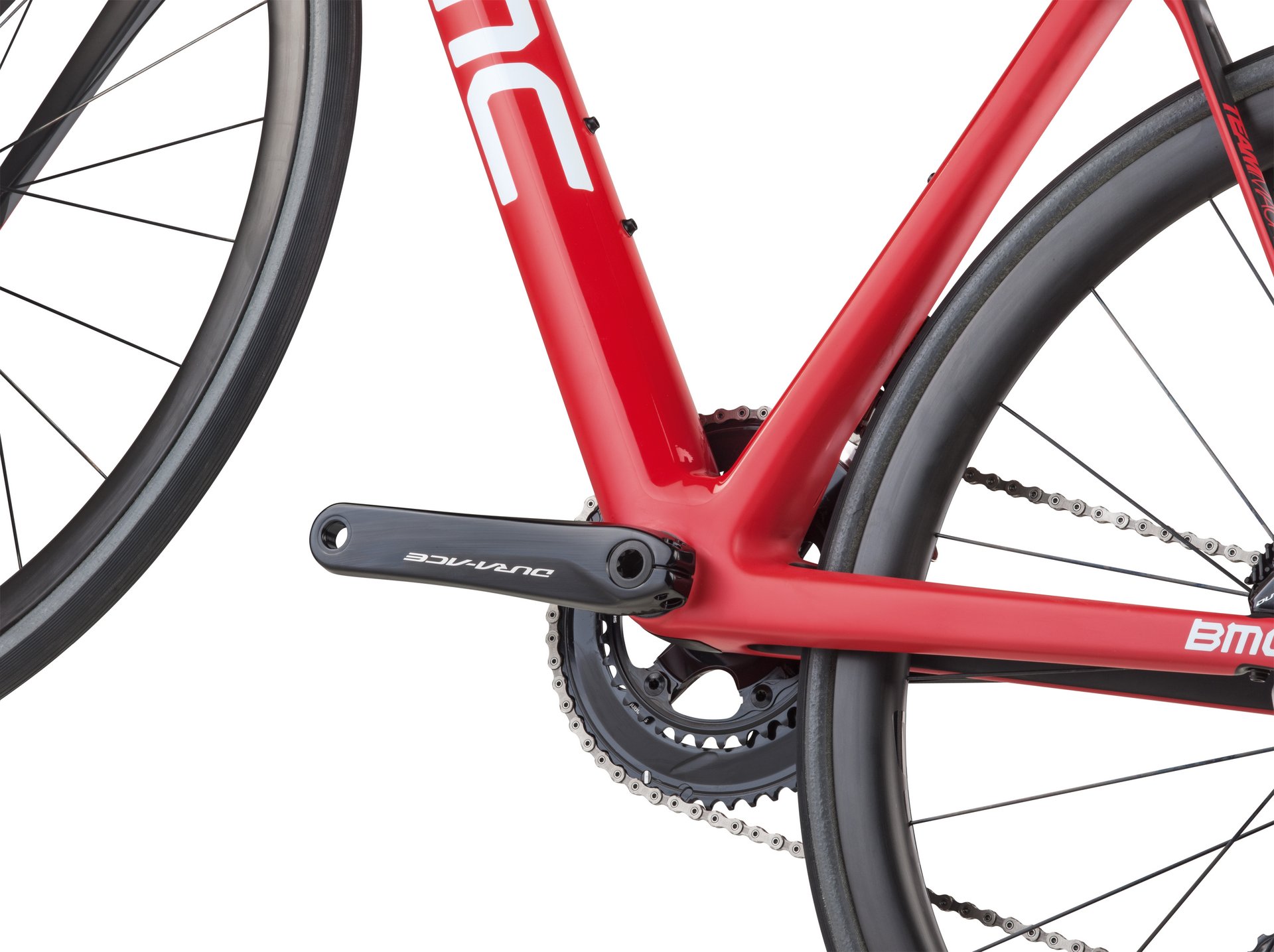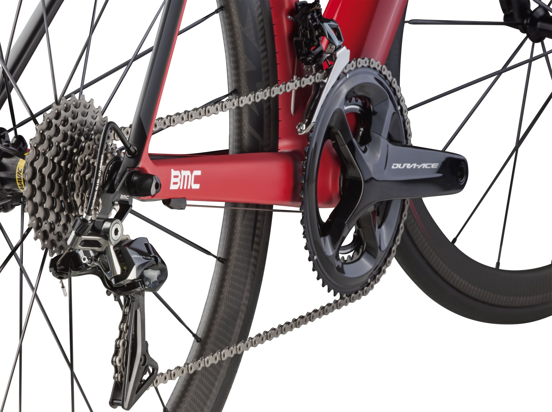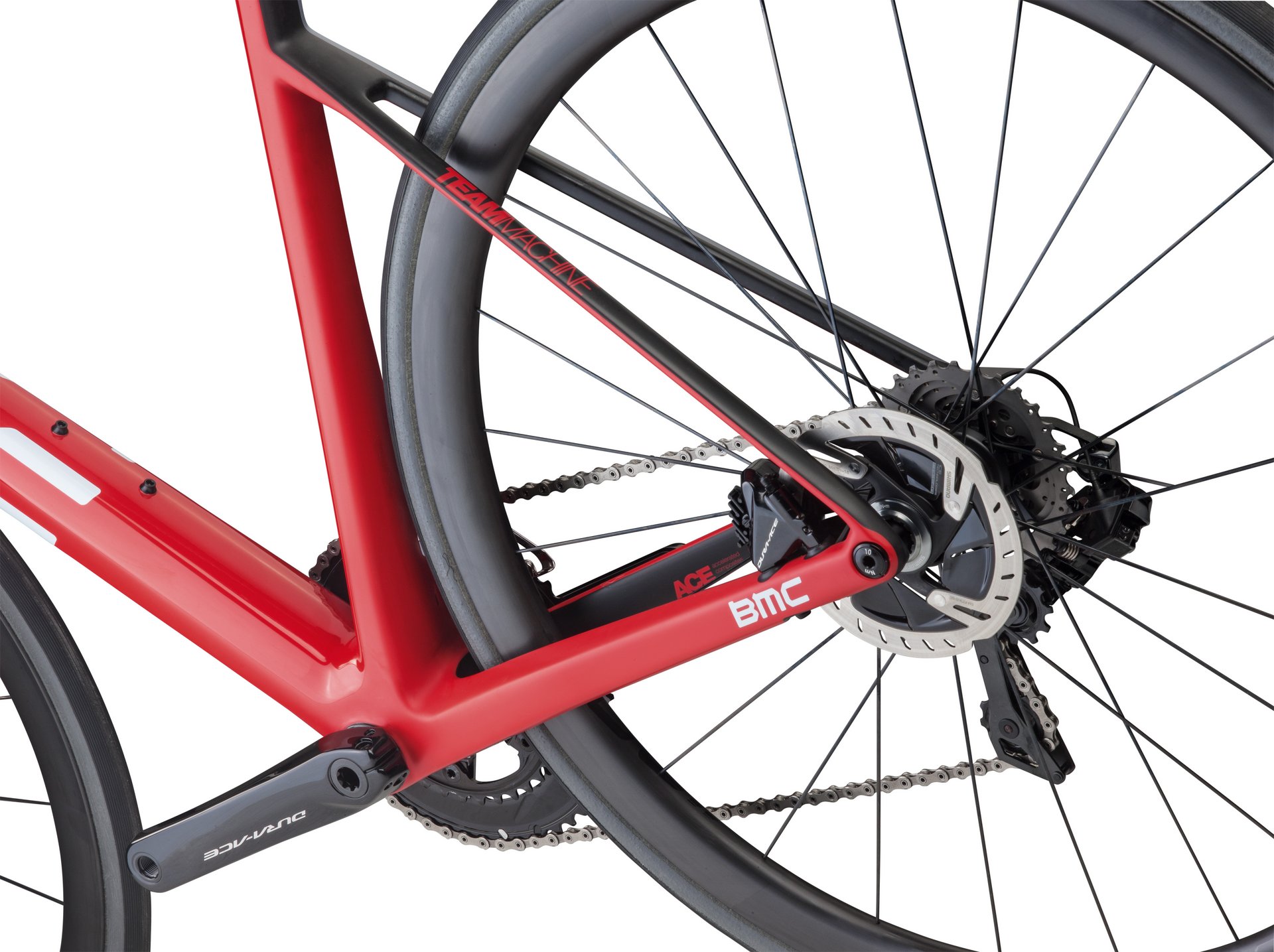 BMC have employed 12mm thru-axles at the front and rear, with a proprietary design which tapers in the middle to save a few extra grams. “Not a single gram on the new Teammachine frame went unscrutinised,” say BMC.