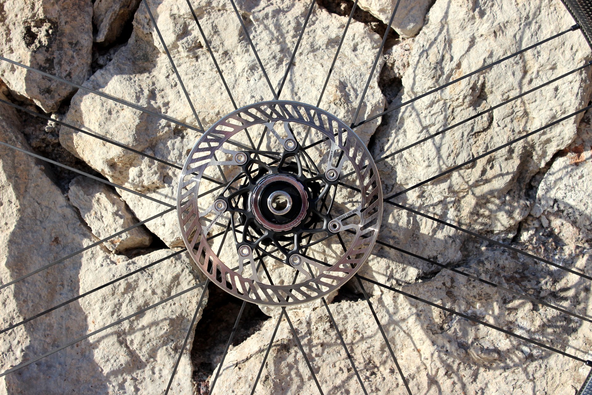 Campagnolo has also adapted the Bora’s G3 spoke pattern, which essentially groups the spokes up into threes, to cope with the asymmetric braking forces served up by disc brakes at both end of the bike.
