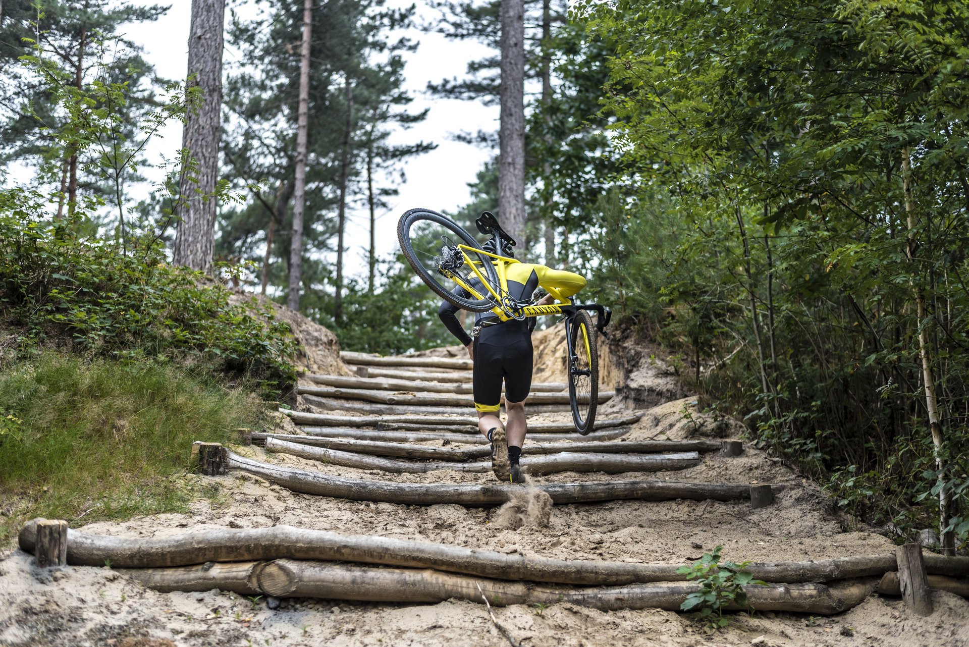 Canyon say they have used a combination of high tensile, high modulus and intermediate modulus carbon fibres to strike a balance of weight, stiffness and durability. “Solely employing high modulus fibres would result in a light and stiff construction, but the frame walls would have to be excessively thick to meet our durability targets, therefore negating any gains,” according to Canyon. “Applying a combination of fibres enables us to deliver the strength required for modern cross racing.”