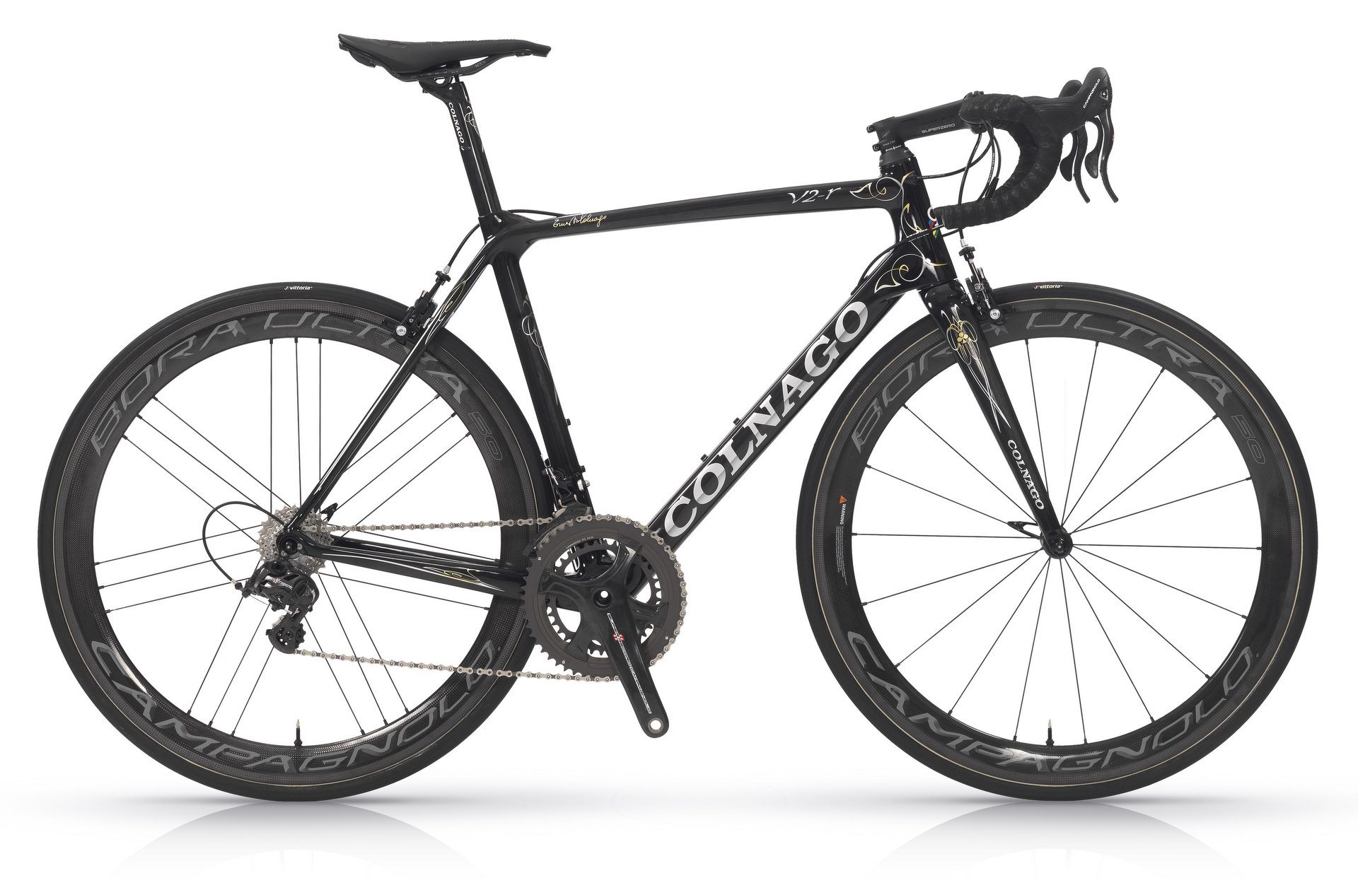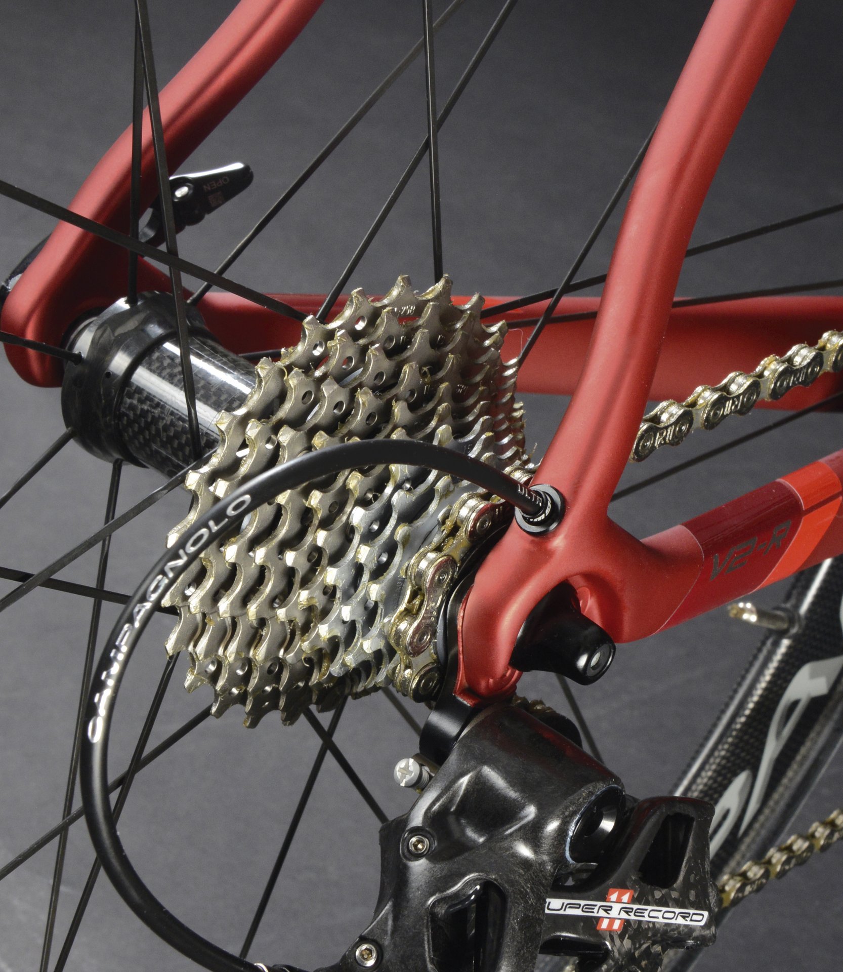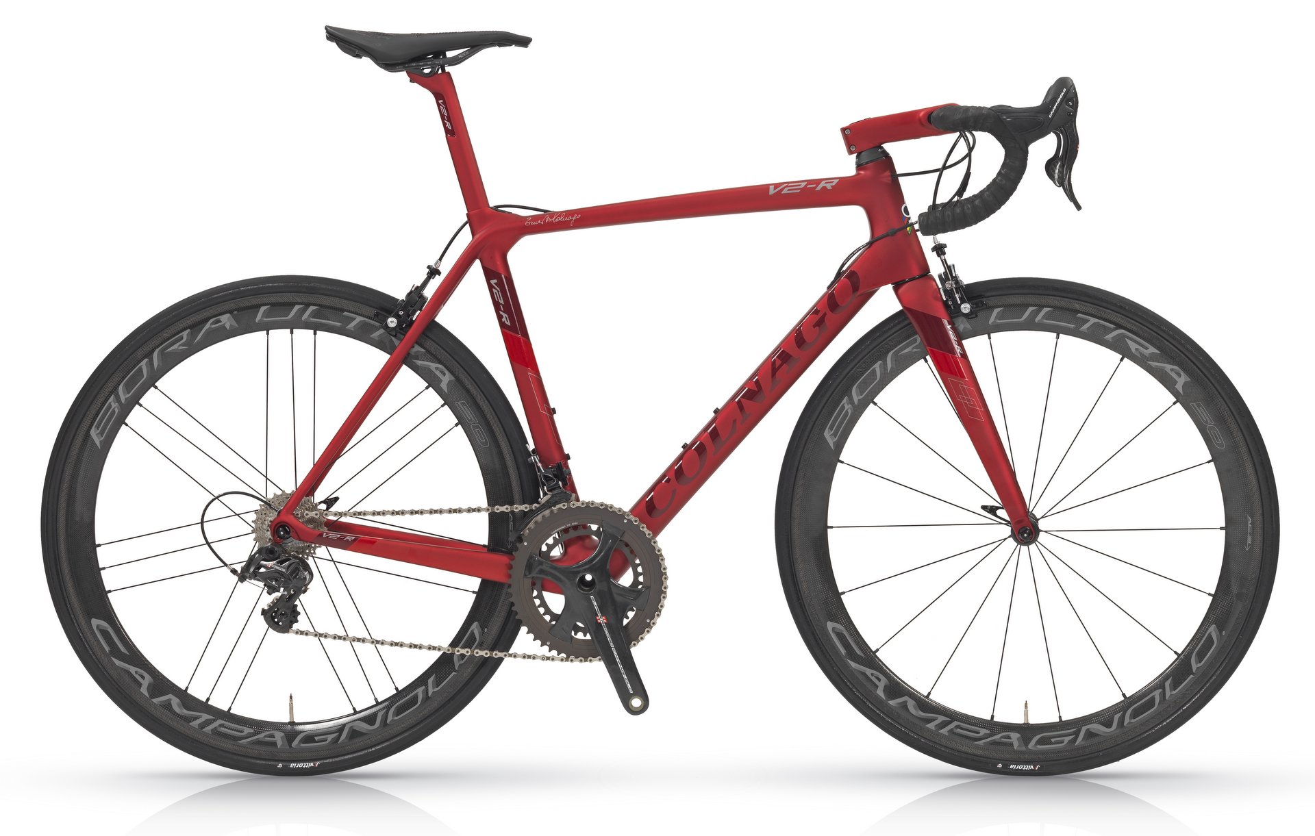 Colnago will offer the V2-r as a frameset for £2,899.95, available from mid-July in three colours (black/red/grey; white/black; black/grey). A complete bike in red, with a Campagnolo Super Record groupset and Campagnolo Bora Ultra wheels, will set you back £8,999.95.