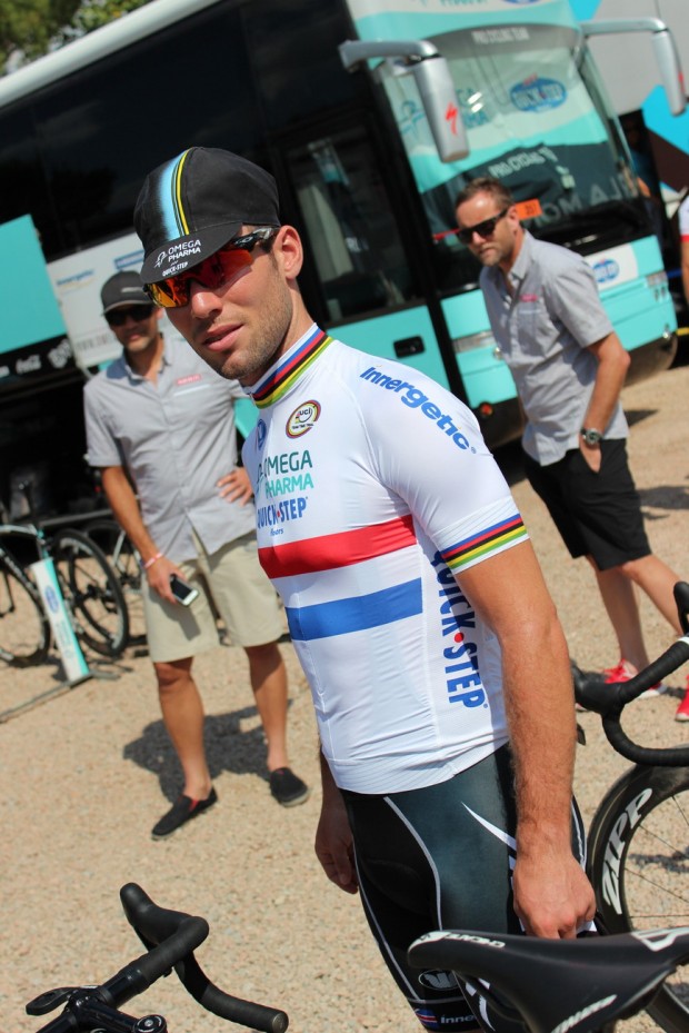 We saw the Manx Missile set off from the team hotel in Porto-Vecchio, Corsica, with his Omega Pharma-QuickStep team-mates for a short training ride on a Specialized S-Works Venge equipped with the new SRAM Hydraulic Road Rim brakes.