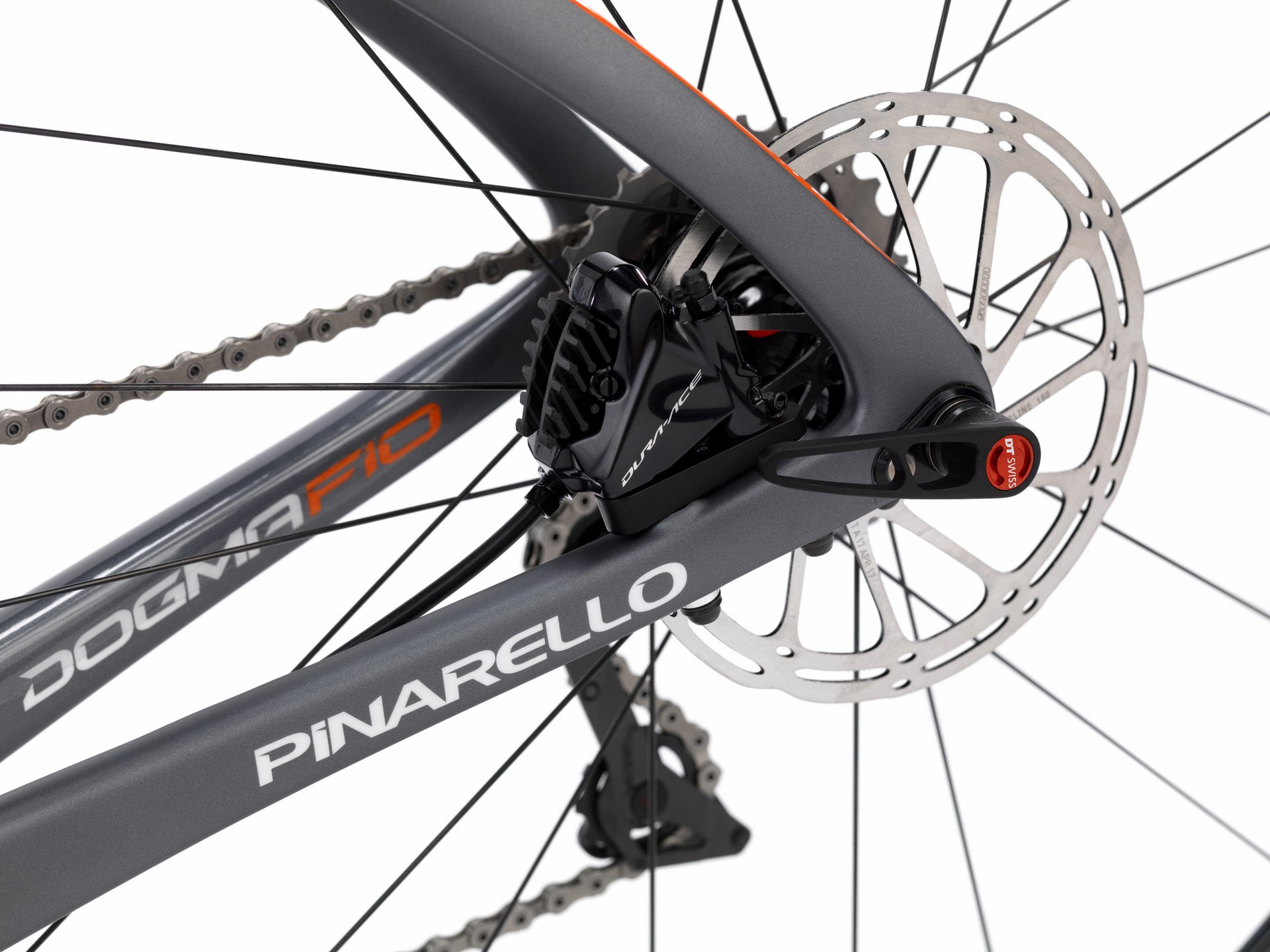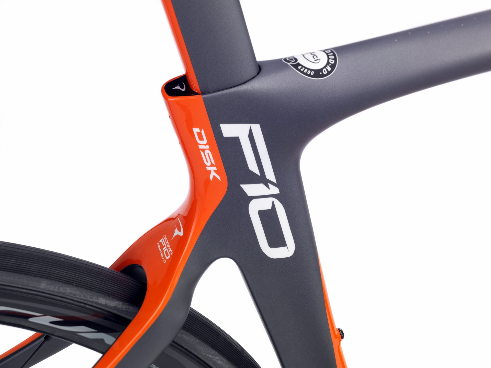 Pinarello say the Dogma F10 Disk, which has been approved for racing by the UCI, ‘combines all the qualities and characteristics of a Dogma F10 with the strength and reliability of a disc brake system’.
