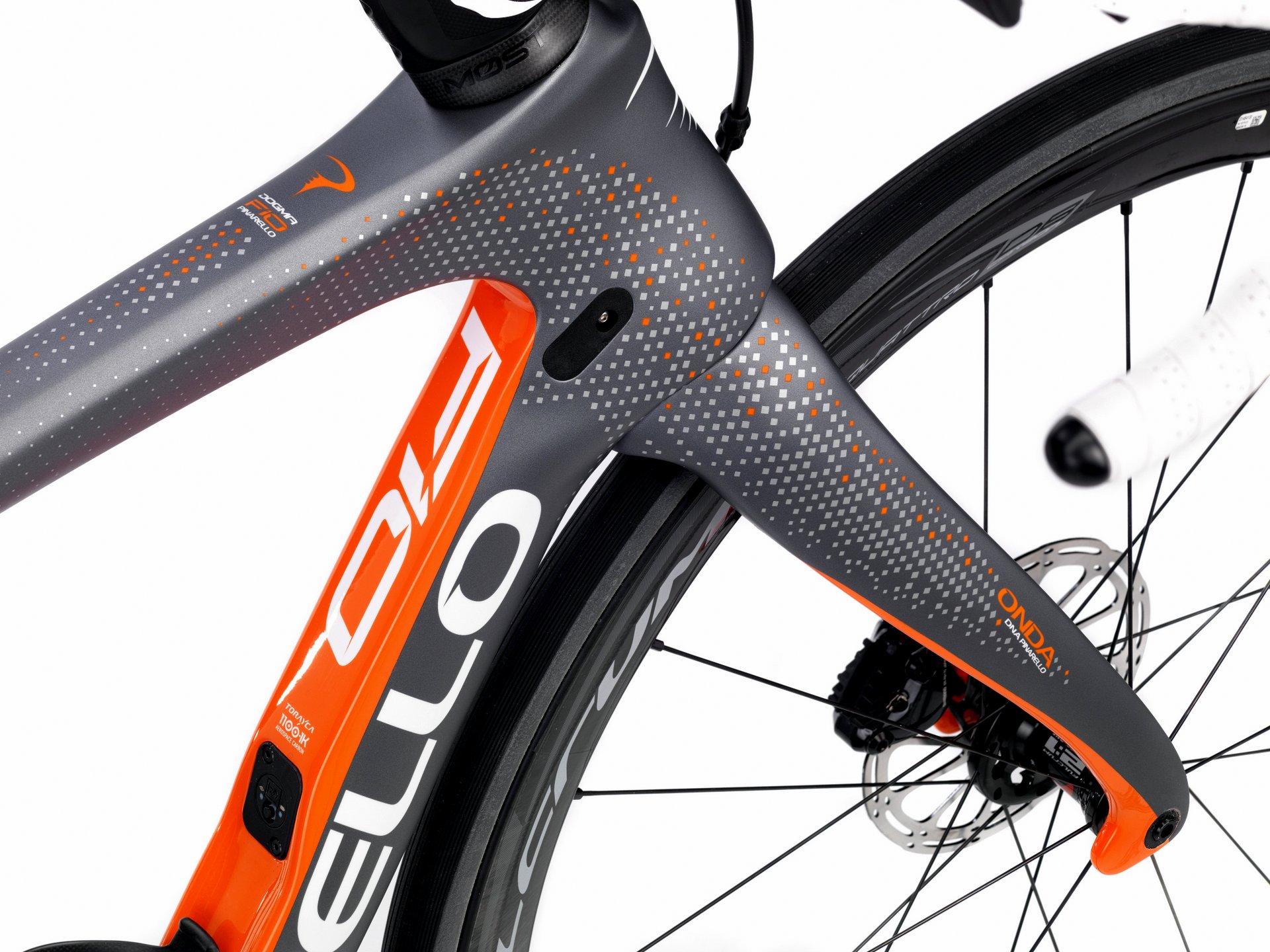 Pinarello have also adapted the ‘fork flaps’ – the material placed behind the dropouts to improve airflow – in order to accommodate the direct mount disc brake standard. While that may marginally increase aerodynamic drag, Pinarello say the integration of disc brakes keeps ‘the fork crown and the rear stays perfectly clean’.
