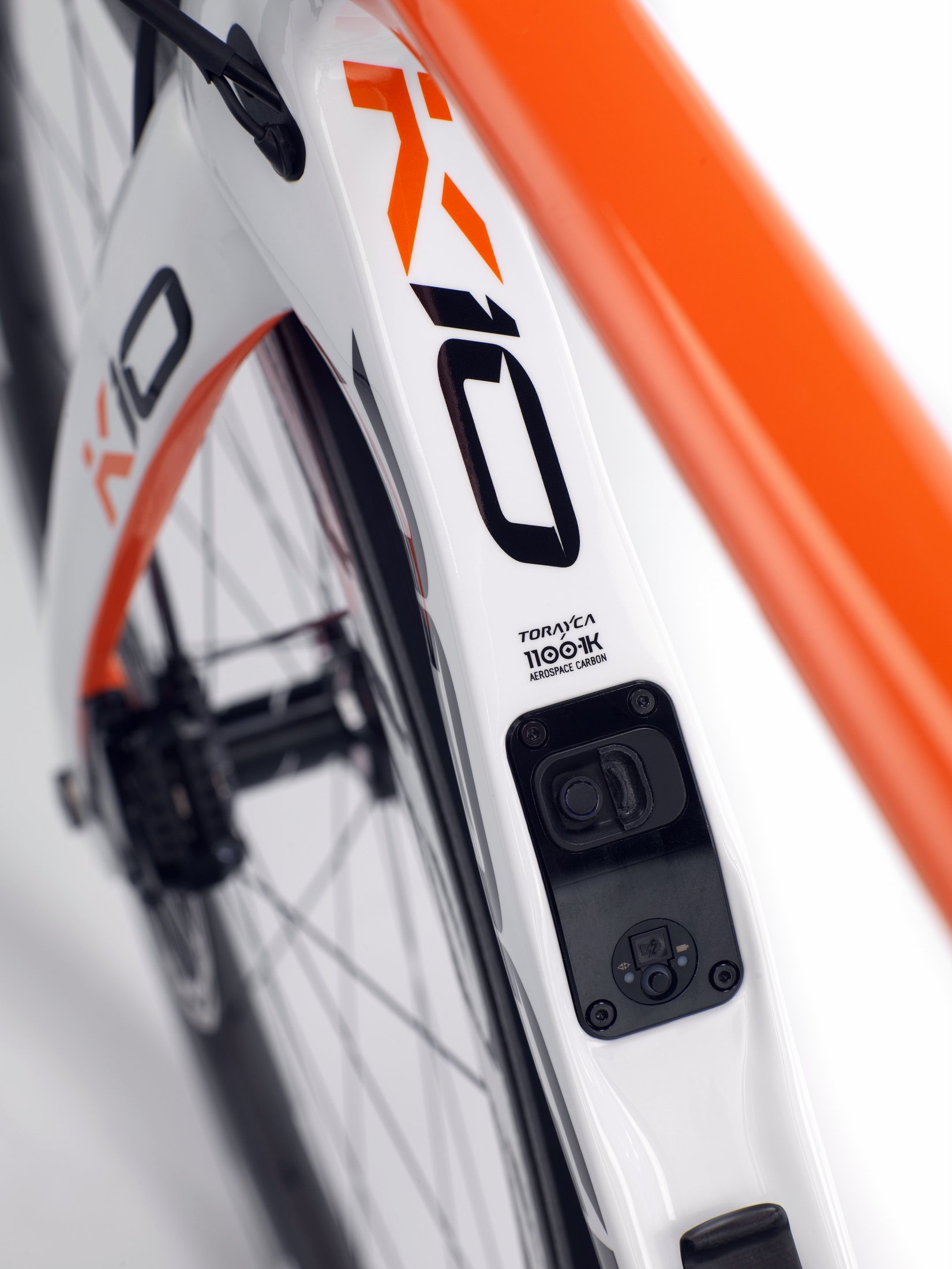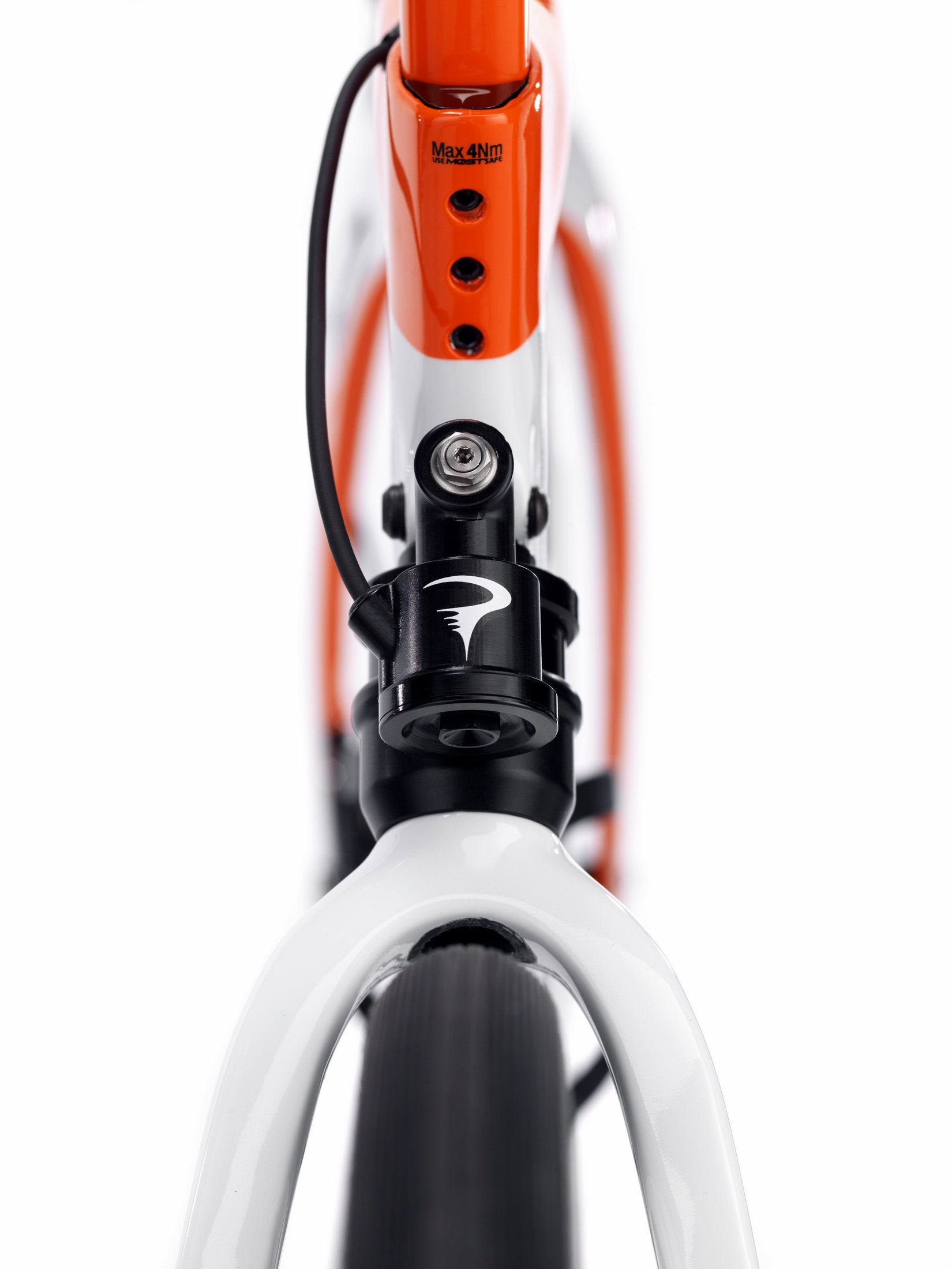 The bike will be available in ten sizes, from 440mm to 595mm, and, in addition to the white-orange colourway shown here, can be bought in black-red or black on black.