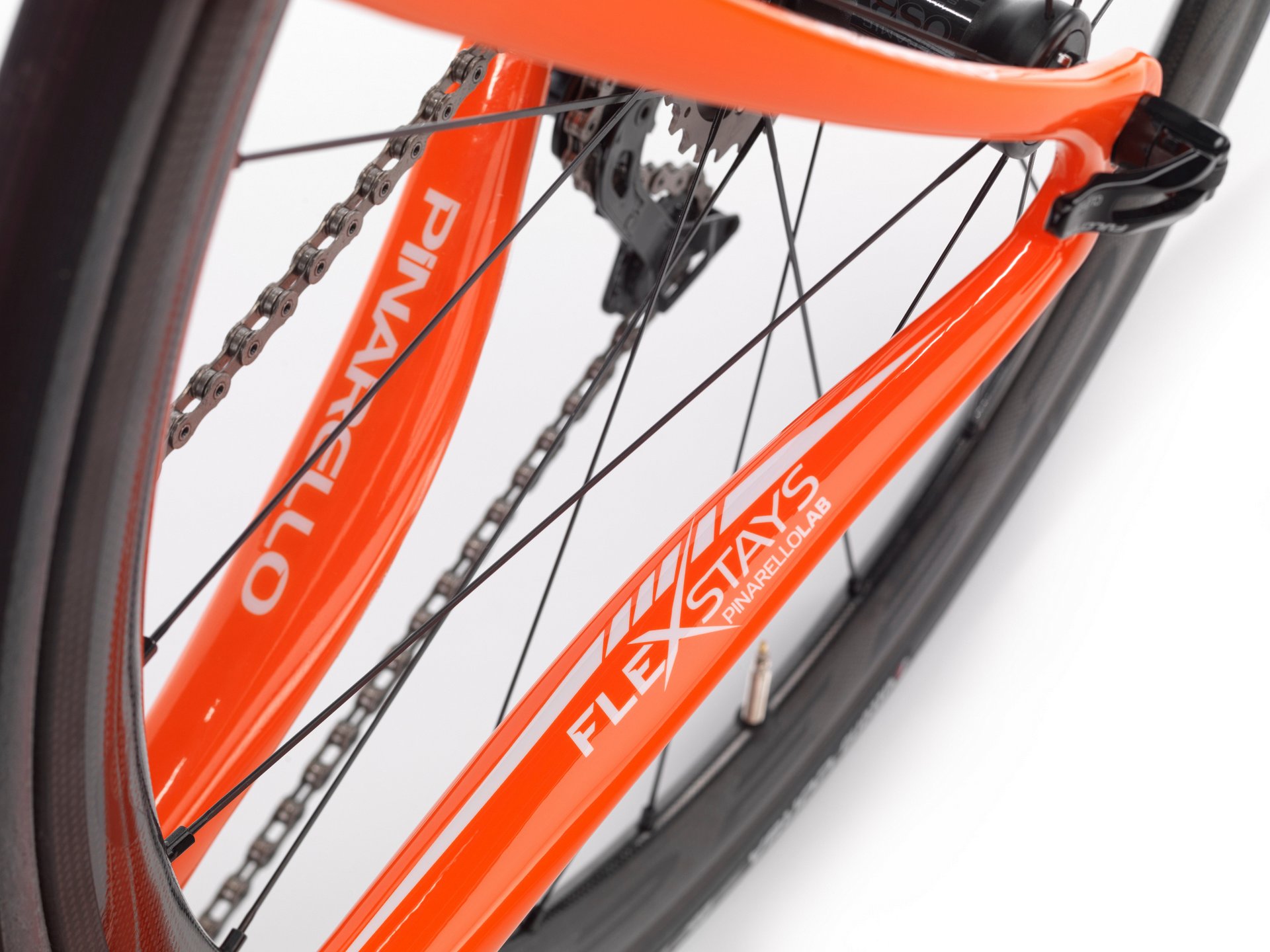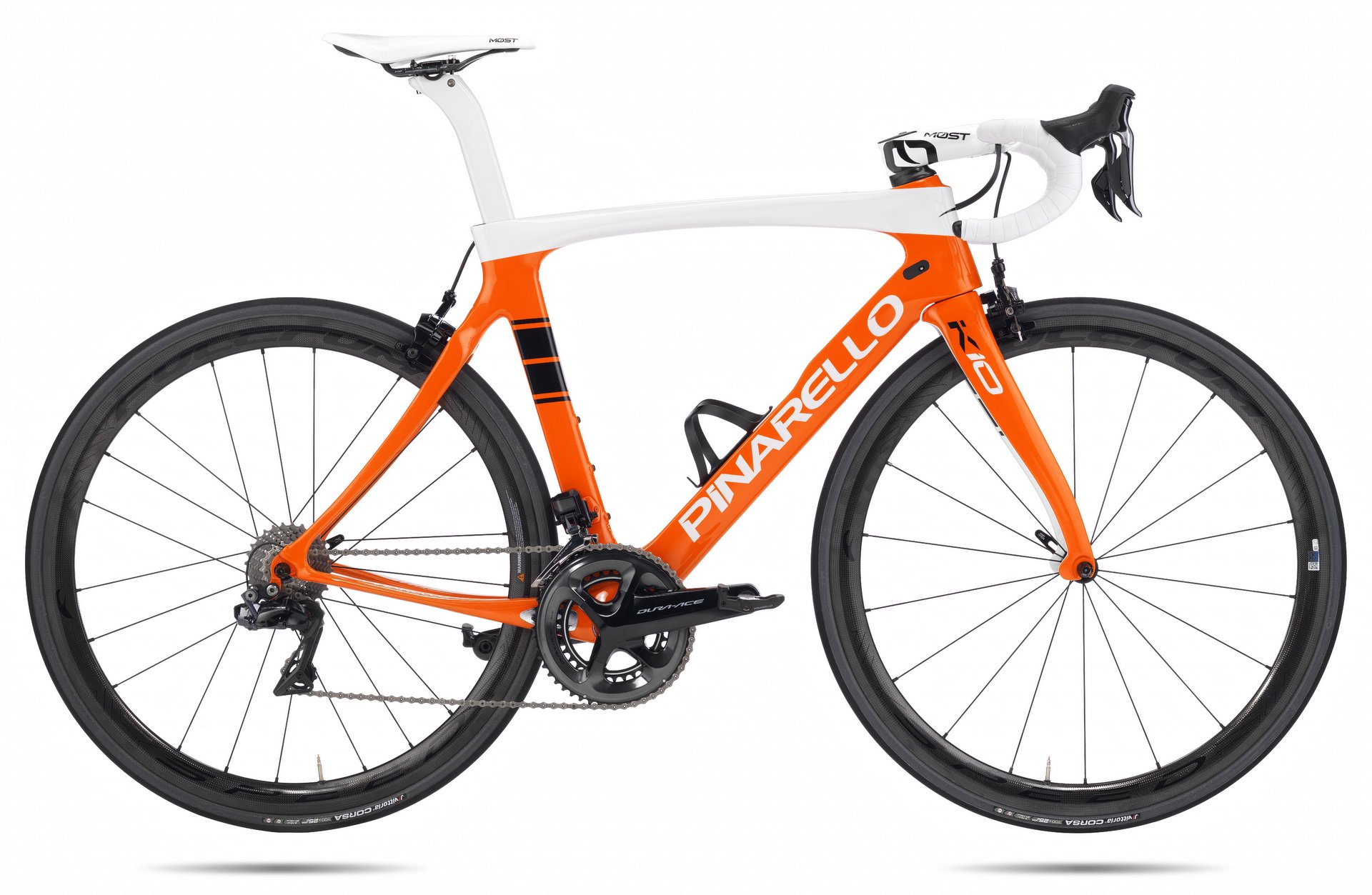 Pinarello will offer the Dogma K10 in ten sizes (44cm to 59.5cm) and three colours (white/orange, black/red and black on black). While Pinarello haven’t released spec details or pricing, the Dogma K10 is pitched towards the top of the market and the images sent to use at launch show the bike with SRAM Red eTap and Zipp 454 NSW wheels, Shimano Dura-Ace with Mavic Cosmics, and Shimano Dura-Ace Di2 with Fulcrum Racing Speed hoops. Take a closer look in the gallery below.