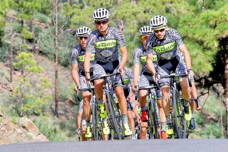 Blue and white stripes added to jersey to make team stand out in the peloton