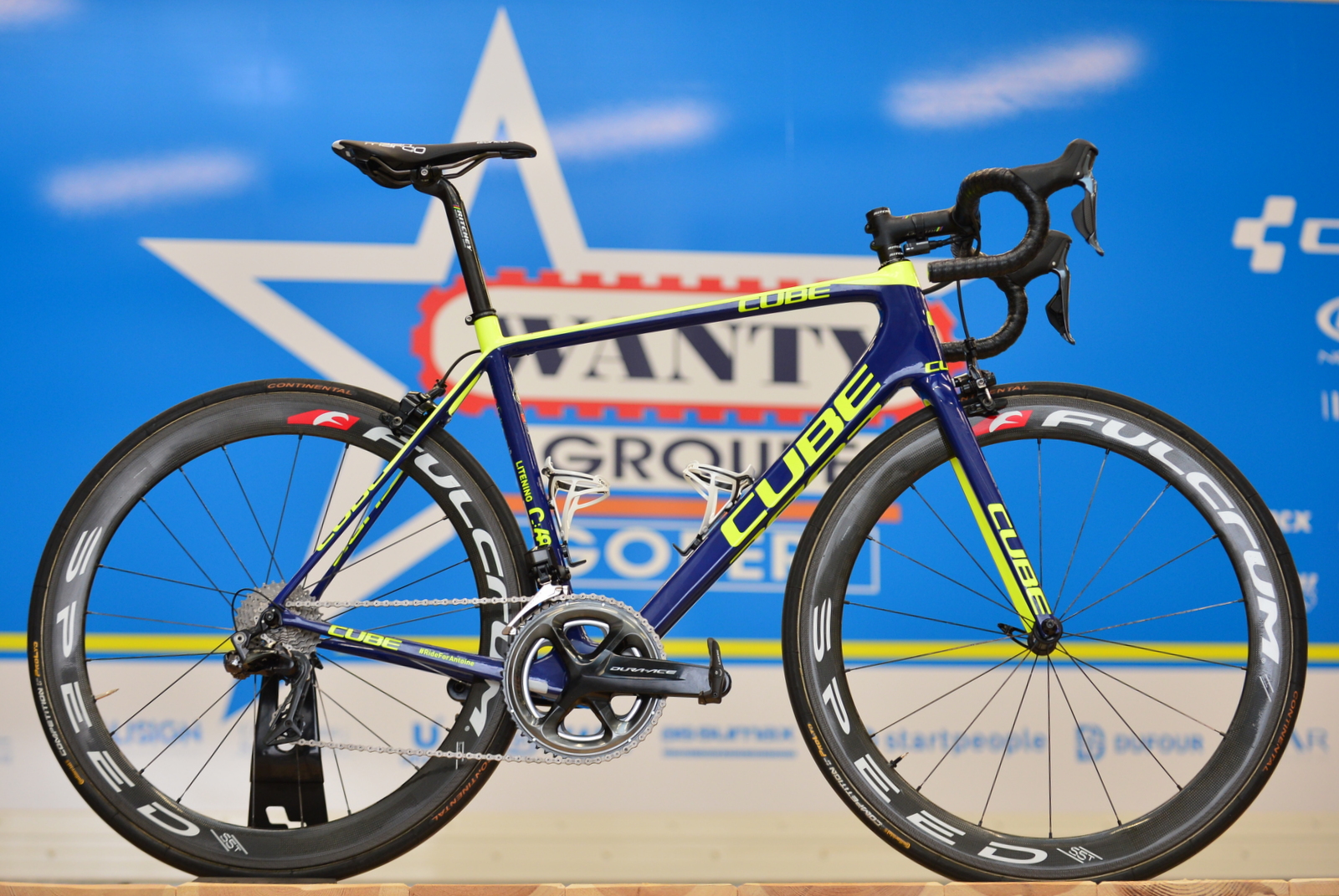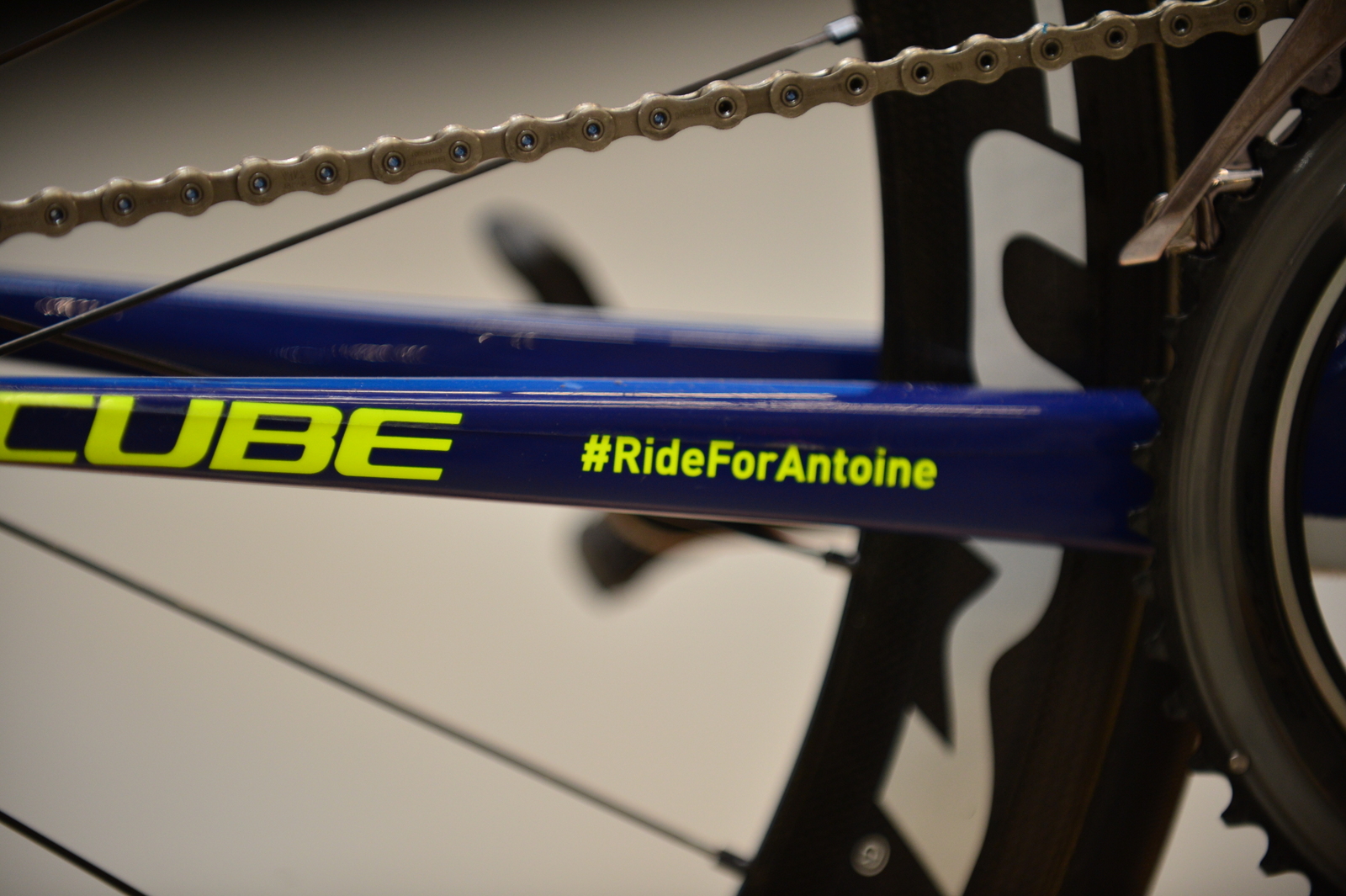 The 2018 team bike, which marks the continuation of a three-year relationship with Cube, now features a new distinctive paintjob, with dark blue and fluro yellow highlights replacing the light blue colourway of 2017. The design also features the hashtag #RideForAntoine, in memory of Wanty-Groupe Gobert rider Antoine Demoitié, who died during the 2016 Gent–Wevelgem after being hit by a race motorbike.