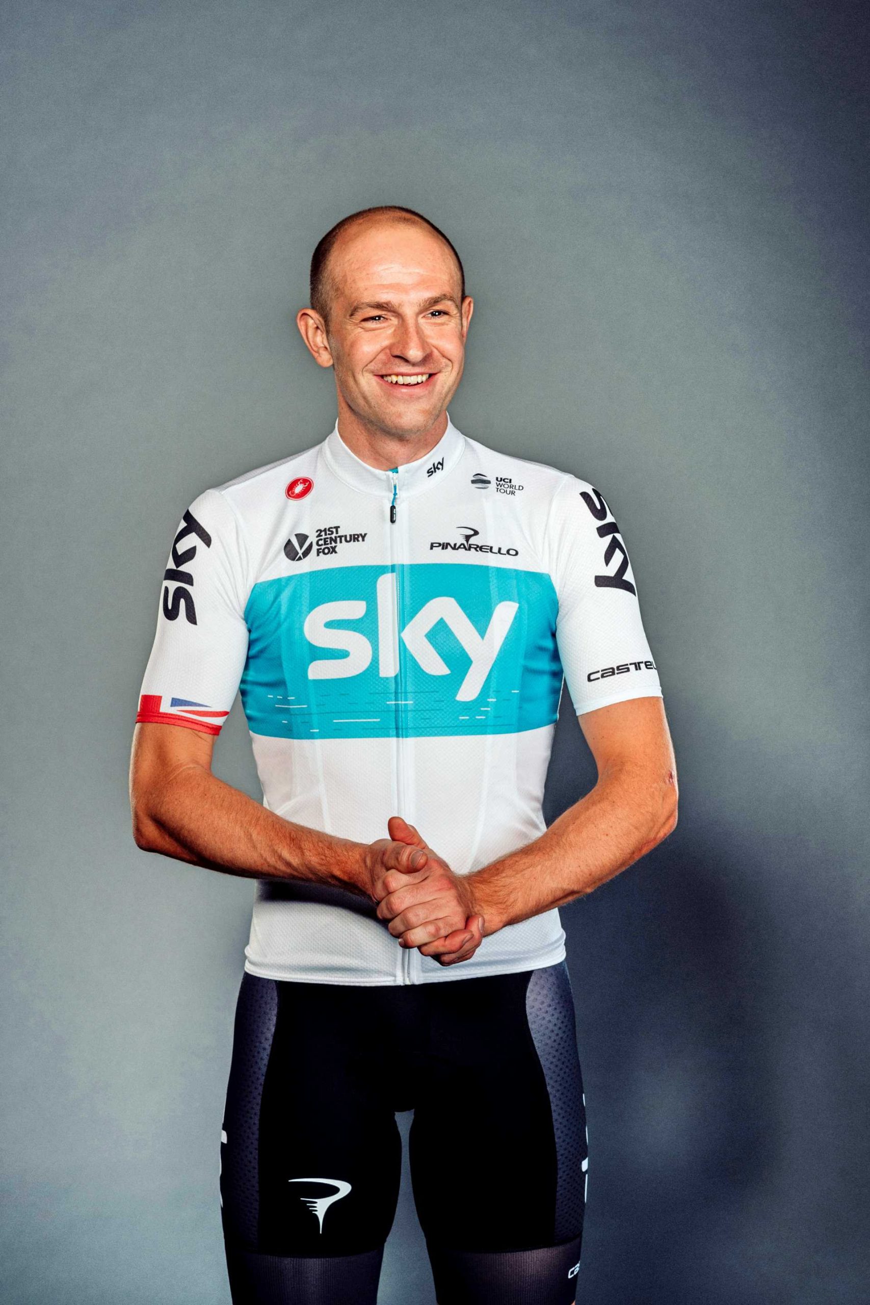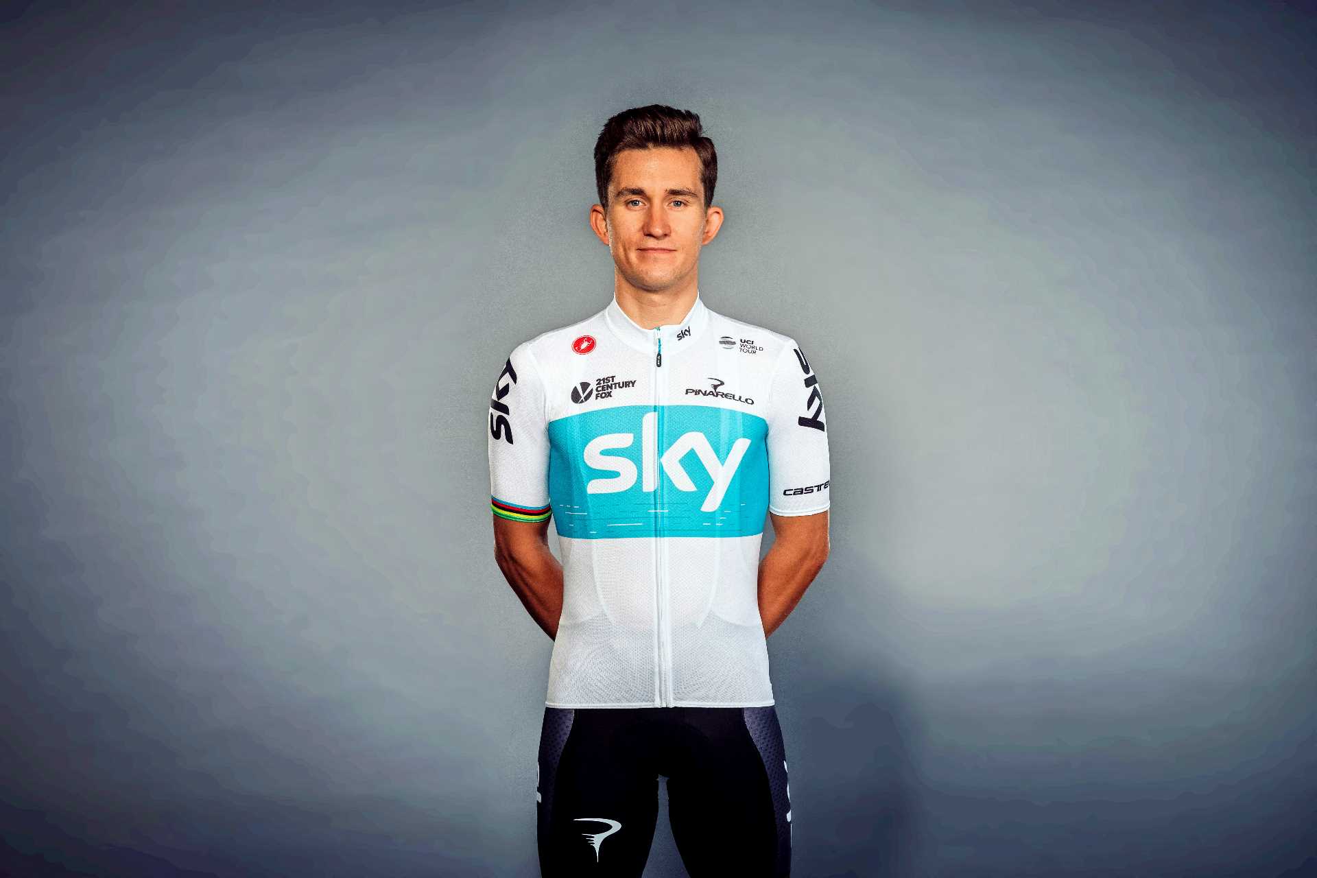 Having worn a white jersey as a one-off for the 2017 Tour de France, the team’s riders will now switch full-time for the 2018 campaign, though the latest design also includes a blue band – complete with Sky logo – across the middle.